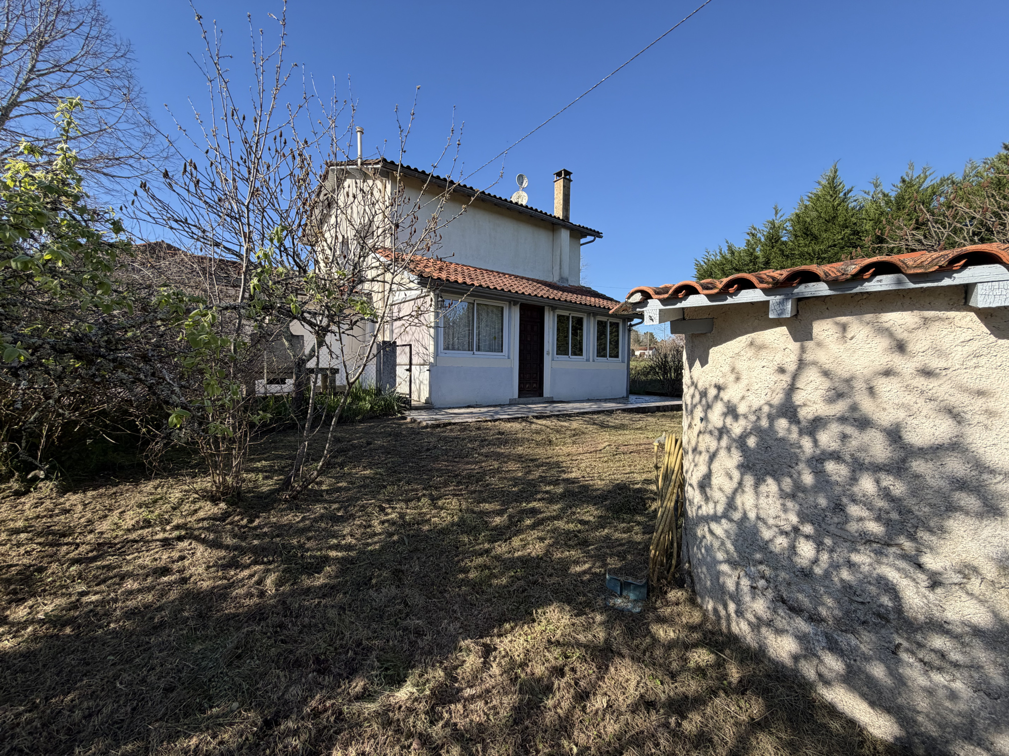 A42817BEC16 - À la sortie d'un charmant hameau, en pleine campagne, découvrez cette maison de la Belle Époque de plain-pied, avec jardin, garage et double garage avec atelier.