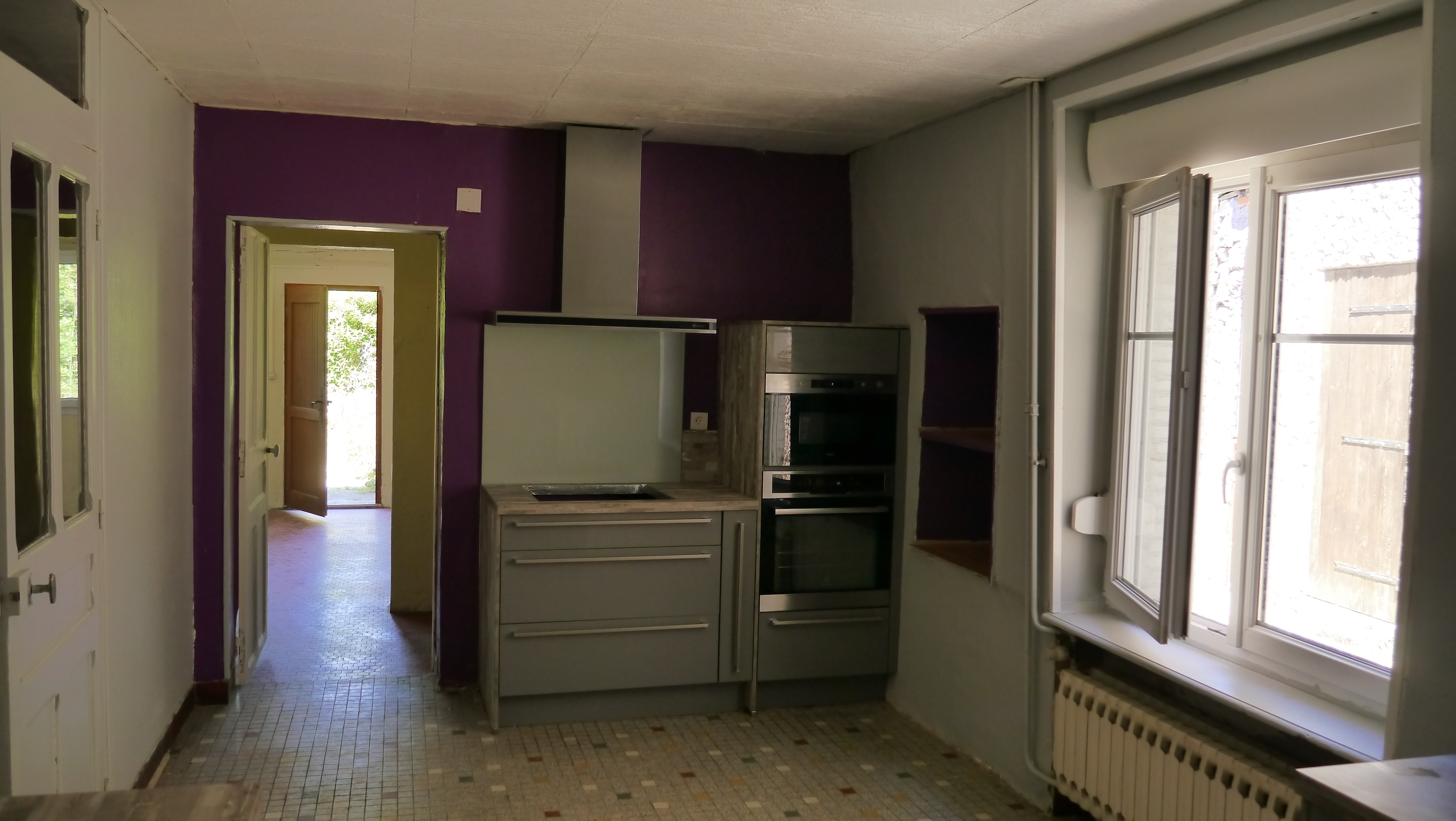 Maison rénovée, composée au rez-de-chaussée d'une cuisine équipée ouverte sur un salon-séjour lumineux.