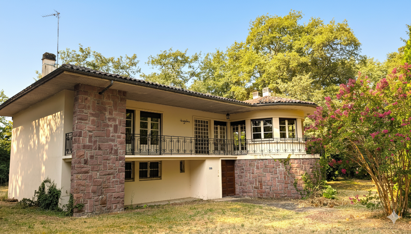 Niché dans un écrin de verdure de plus de 2600m², venez découvrir cette très jolie maison de style landaise en pierres de 135m² habitables .