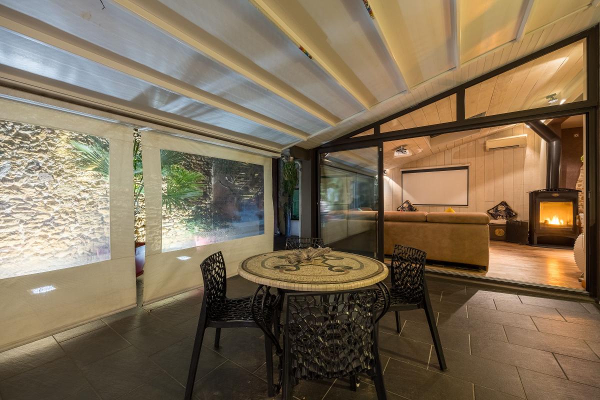 Elle se compose d'une véranda, d'une vaste et lumineuse pièce de vie, avec un coin bureau, une cuisine équipée et aménagée, une buanderie.