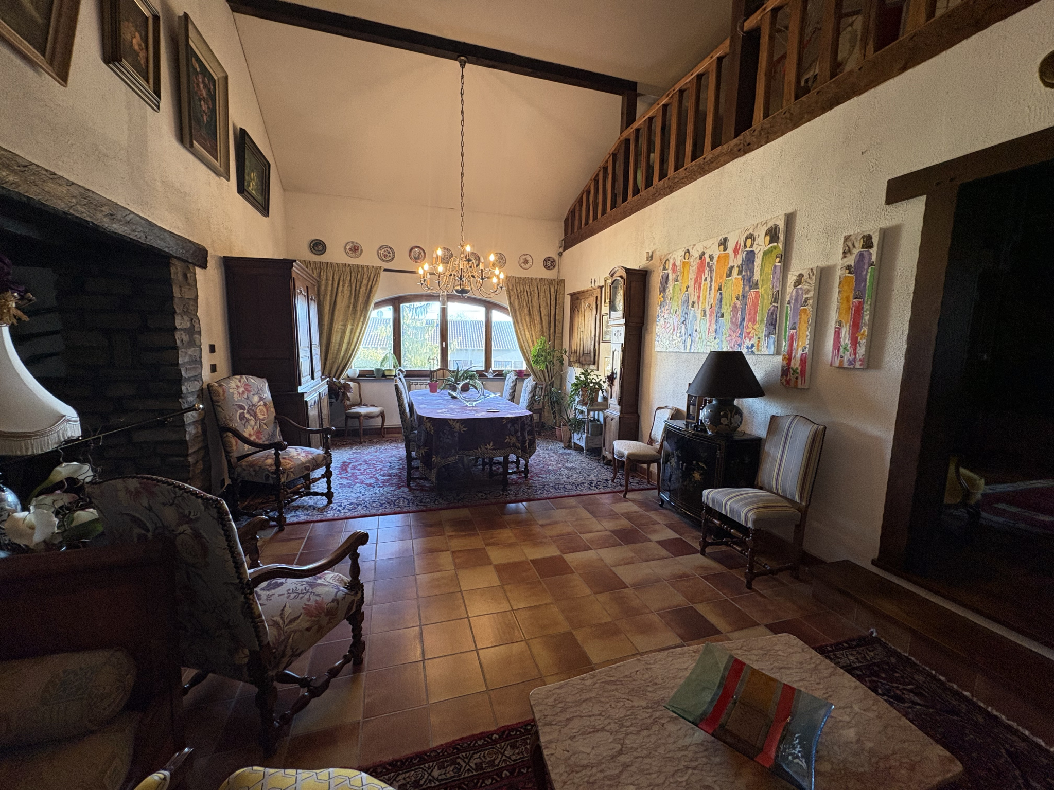 En franchissant le seuil de porte de cette maison de village particulièrement atypique, vous serez accueilli par une entrée qui ouvre directement sur un séjour /salle à manger convivial, idéal pour partager des moments en famille ou entre amis.