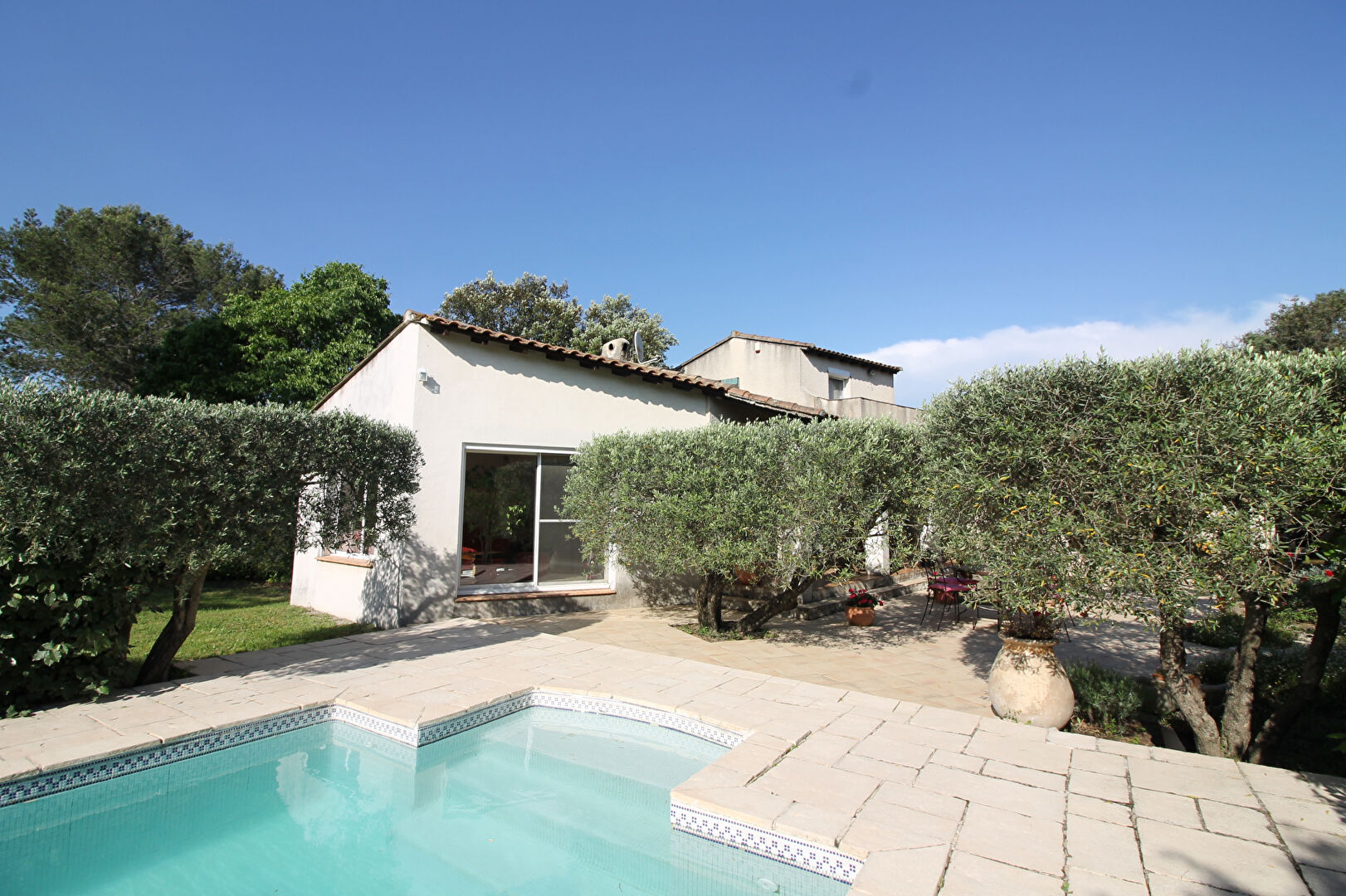 Situé au coeur d'un terrain arboré et sans vis à vis, un Mazet rénové d'une surface de 132m2.