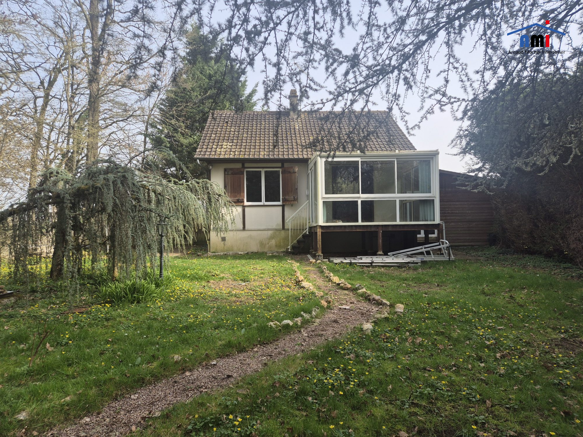-au -rez-de-chaussée : cuisine aménagée, séjour-salon avec cheminée, véranda, dégagement, salle de bain et wc séparés