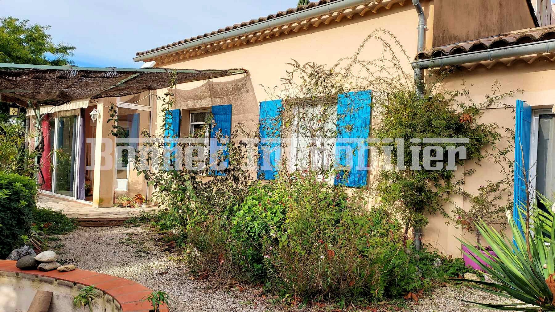 Dans un quartier résidentiel proche des commodités, villa de plain-pied fonctionnelle et lumineuse sur terrain clos et arboré de 830 m2 avec quelques fruitiers (cerisier, olivier, figuier, abricotier), et abri de jardin.