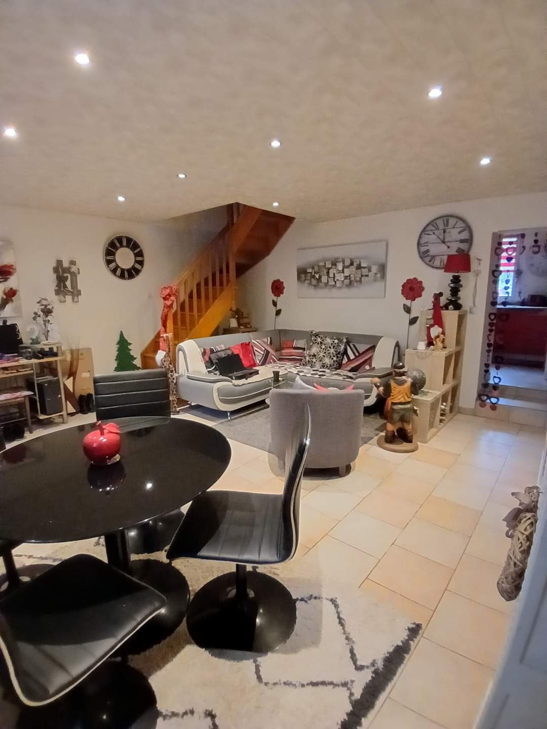 Dès l'entrée, on découvre un salon chaleureux avec c...