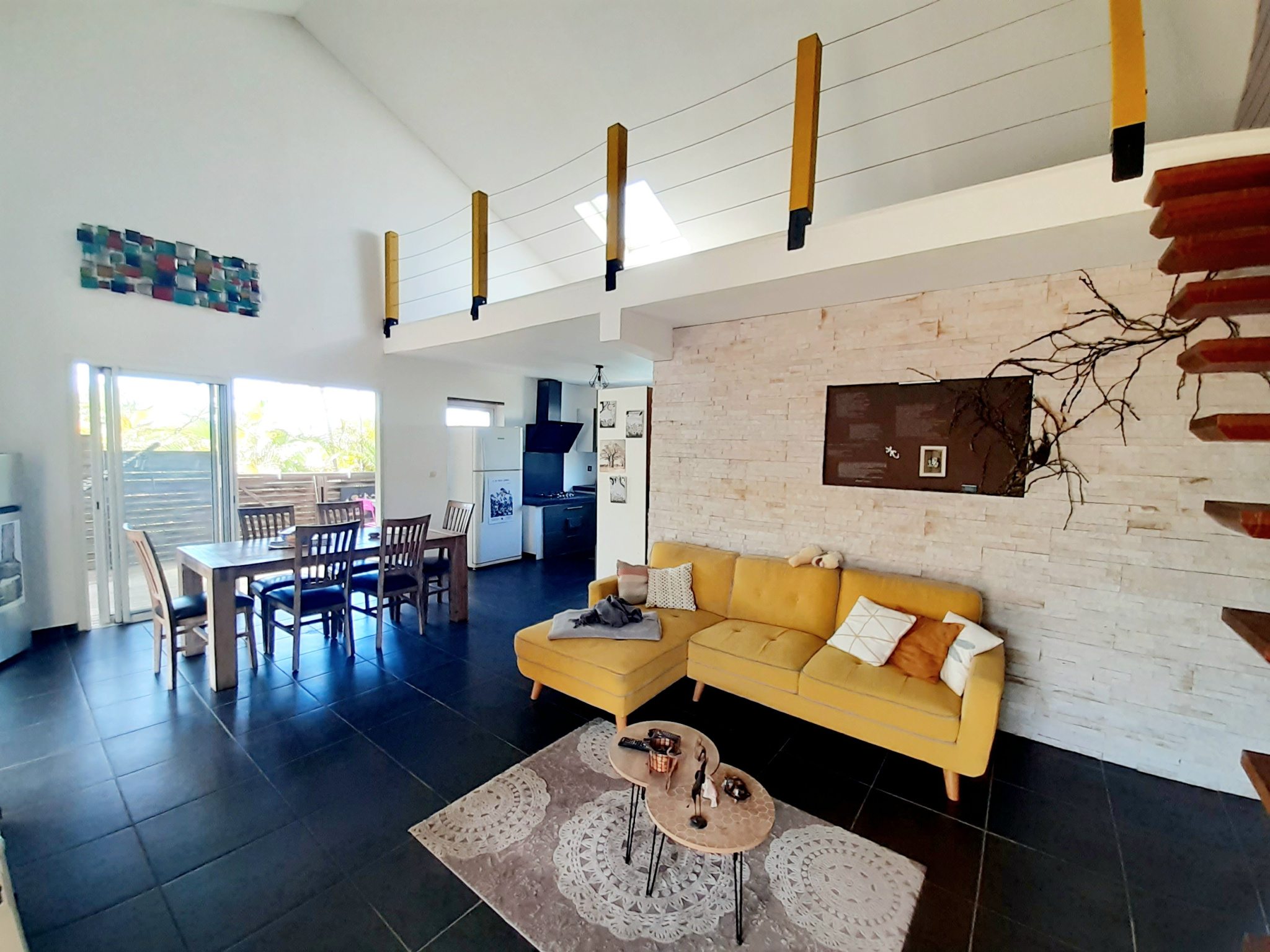 Espace jour de 40 m2 avec son haut plafond et sa cuisine équipée...