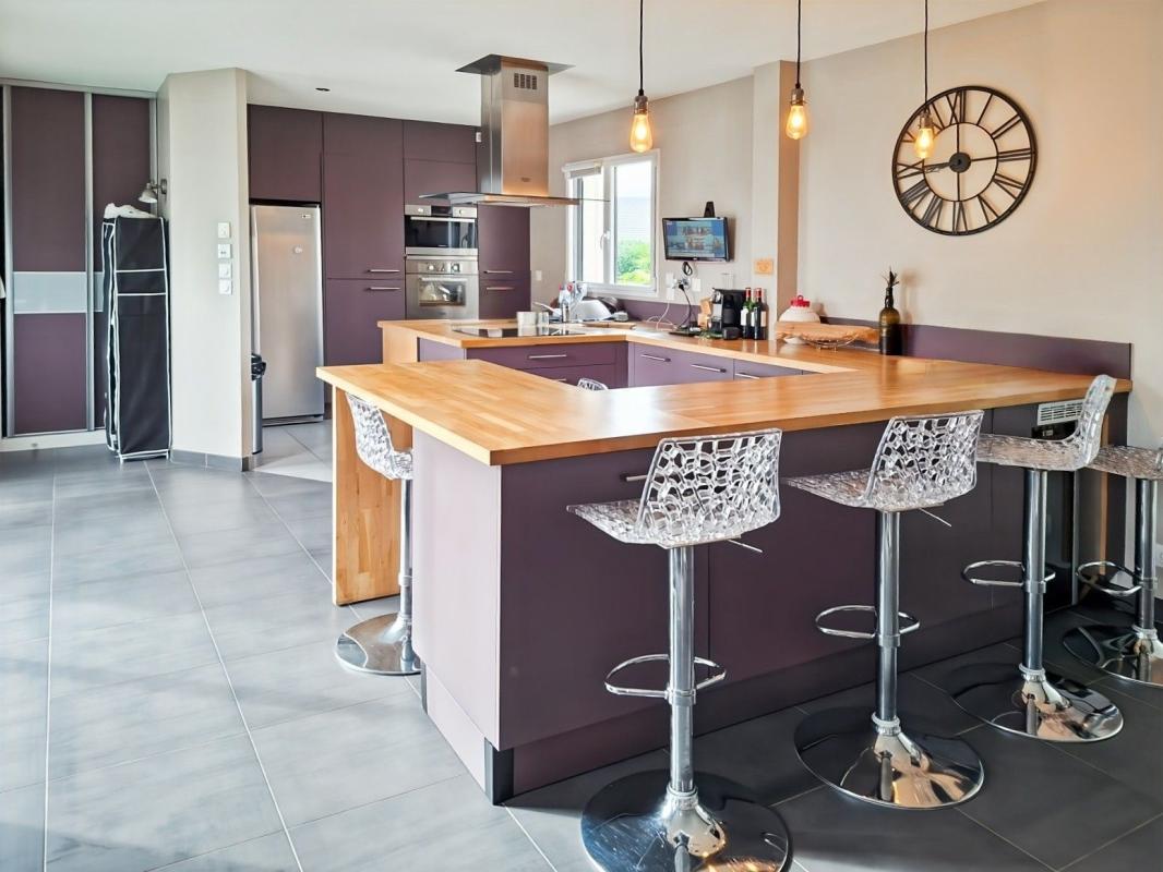 belle maison contemporaine de plain pied- grande salle de vie d'environ 60 m² avec belle cuisine équipée -