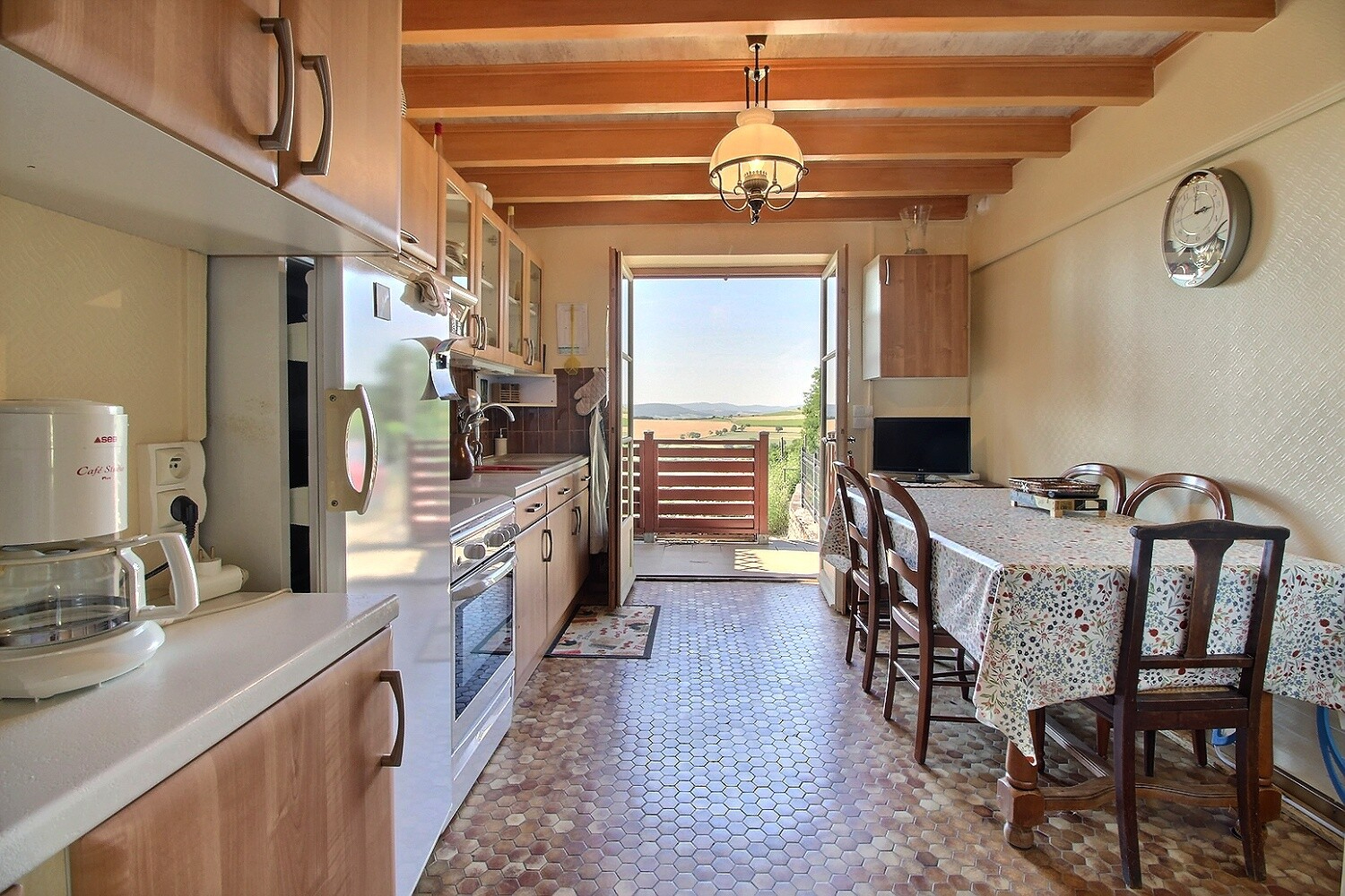 Maison de village de 76 m² habitables avec vue panoramique sur les environs offrant au rez-de-chaussée: entrée sur salon, cuisine équipée avec accès terrasse. A l'étage: dégagement avec rangement et 2 chambres.