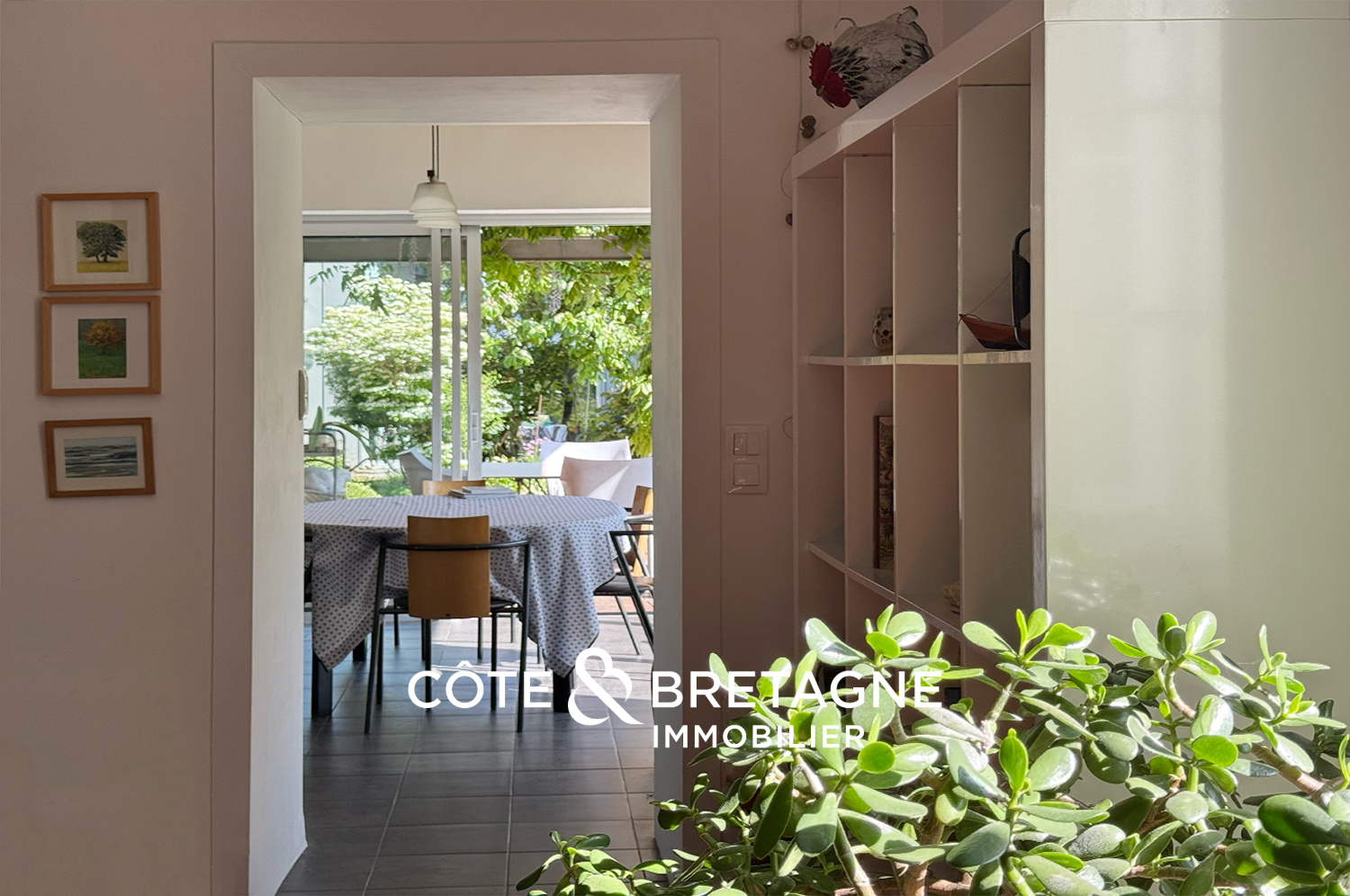 A VENDRE, SAINT-BRIEUC, quartier Beauvallon, maison de ville des années 50 entièrement rénovée, sur 300 m2 de terrain clos comprenant au rez-de-chaussée : entrée, deux bureaux (poss chambres), salle de bains, buanderie, véranda chauffée et wc avec lave-mains;...