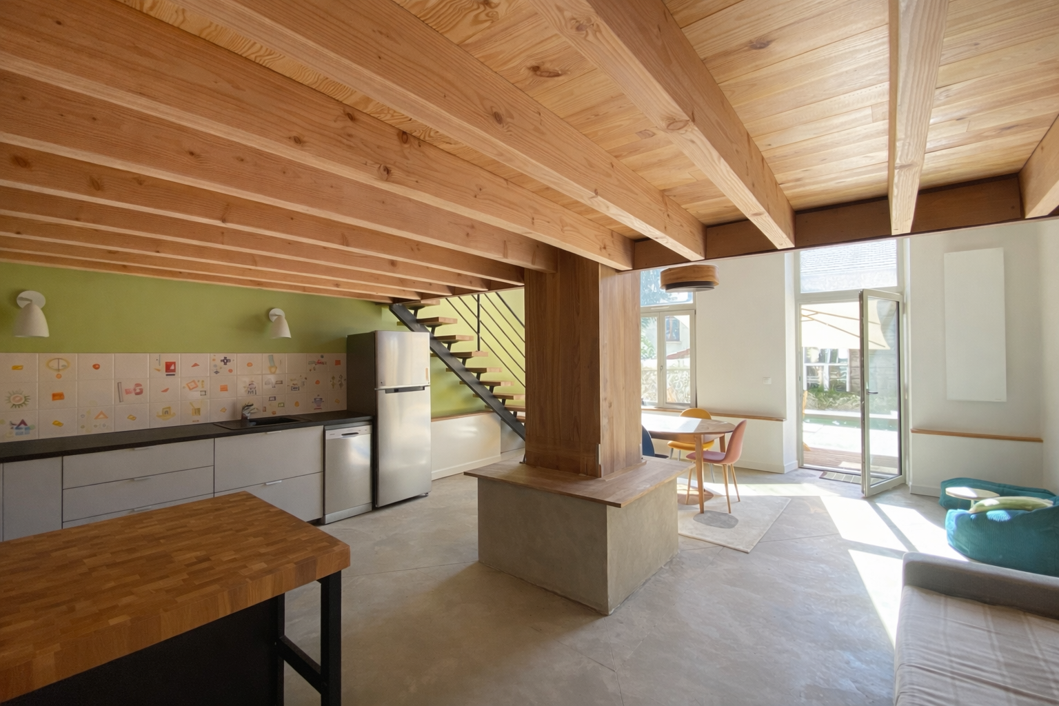 En Rez-de-chaussée : cuisine équipée ouverte sur pièce de vie, salle d...