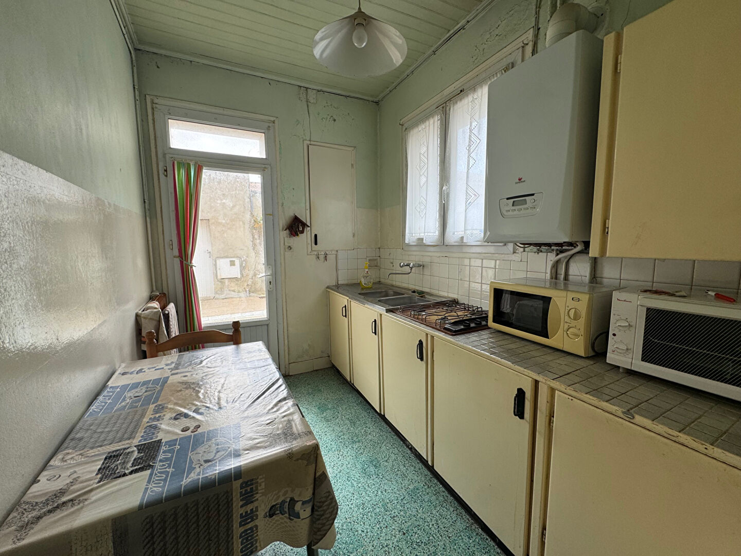 Exclusivité - Centre-Croix de Vie, maison de type 2 de 38 m² habitables comprenant : séjour-salon, cuisine aménagée et équipée, une chambre, salle d'eau avec wc, wc séparé, cour.