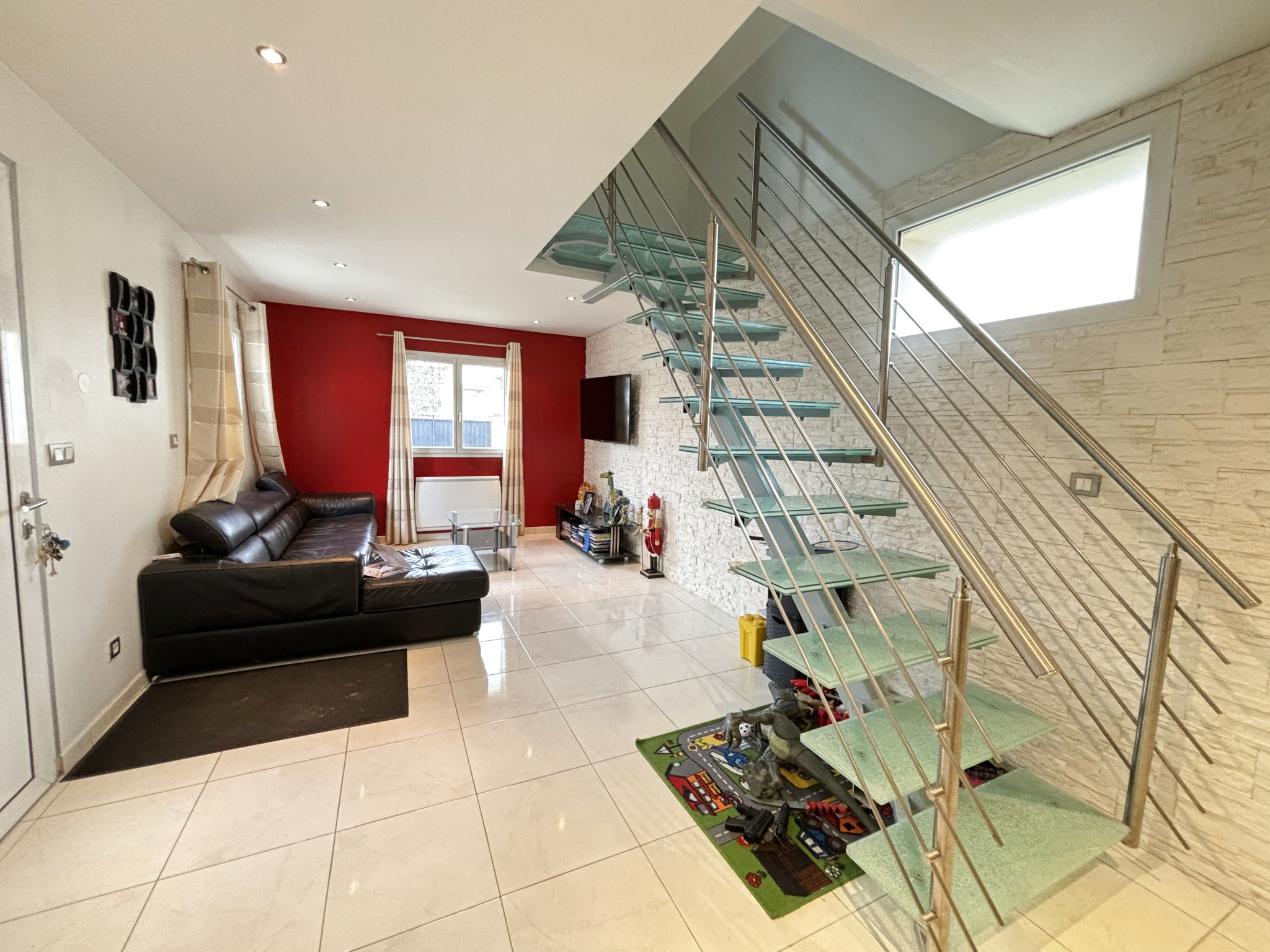 Situé dans un quartier calme et résidentiel proche des écoles, centre aéré, boulangerie, bus pour RER. L'entrée dessert un vaste séjour avec accès direct sur la terrasse et ...