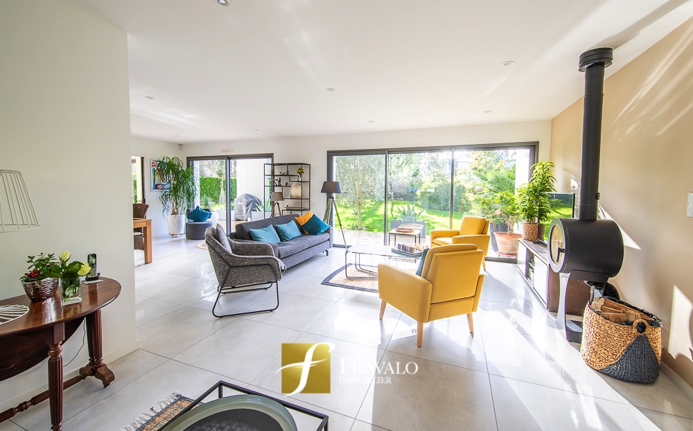Vannes ouest, très belle maison d'architecte dans un état irréprochable comprenant au rez-de-chaussée un spacieux et lumineux salon, une salle à manger, une cuisine aménagée-équipée, une arrière cuisine, une suite parentale avec salle de bains, une chambr...