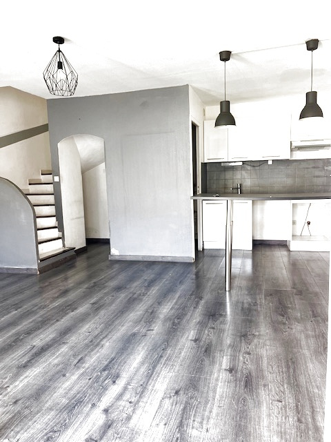 LA LONDE LES MAURES, maison de type 3 trés fonctionnelle, accolée, composée en rez-de-chaussée d'une pièce de vie de 30m2 avec cuisine ouverte et cellier, ouvrant sur cour/jardinet de 20m2 env. rangement sous escalier, à l'étage 2 chambres de 12.30m2...