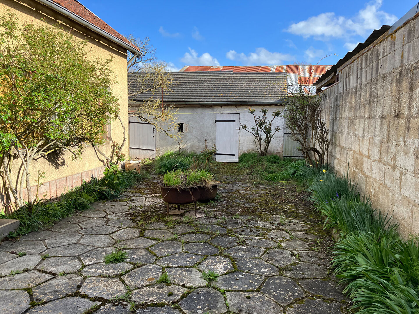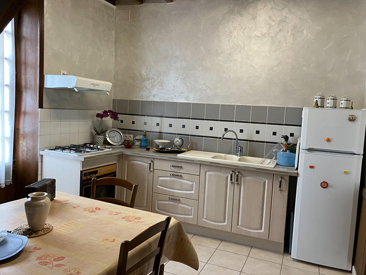 Maison de ville avec garage et jardinet composée d'une grande cuisine, séjour, buanderie, salle d'eau avec wc