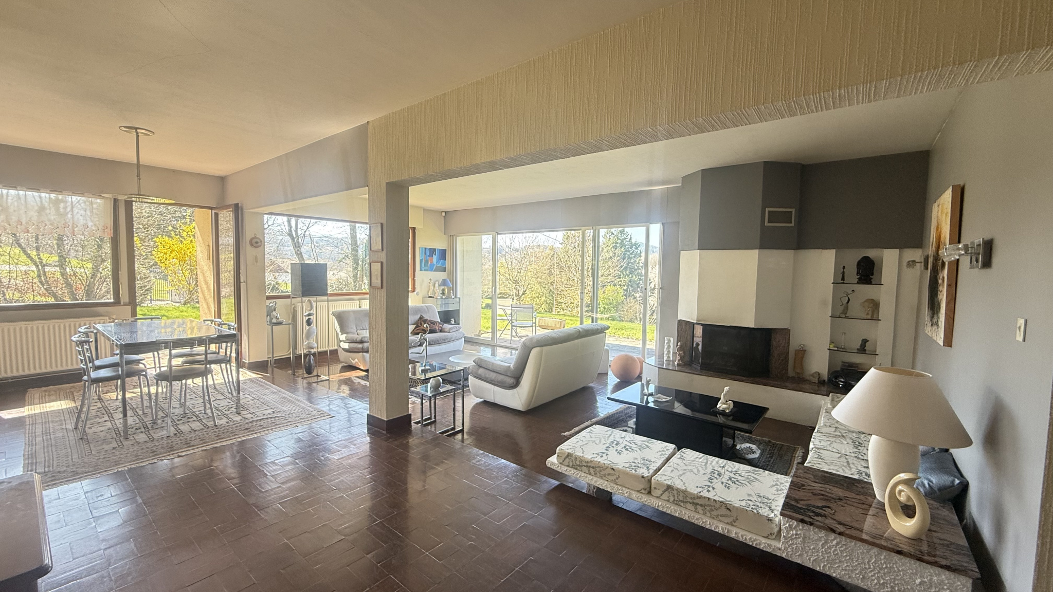 Le salon/séjour avec cheminée est parfaitement orienté, permettant l'accès vers la terrasse et la piscine, grâce à de grandes baies vitrées. Cuisine sép...