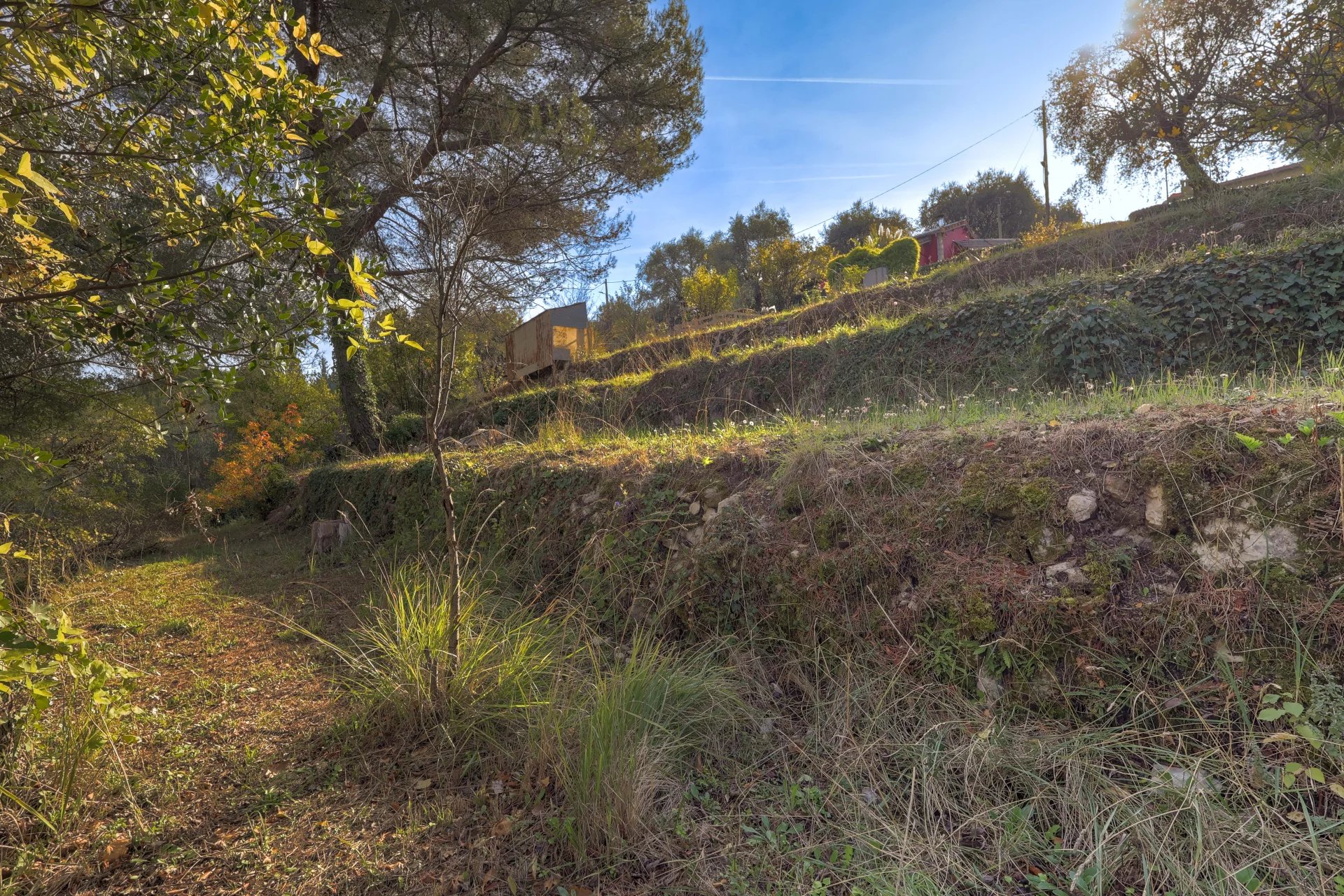 Situé au calme ce terrain vous permettrait de profiter rapidement des joies de la côte d'azur tout en étant en retrait du brouaha du littoral.