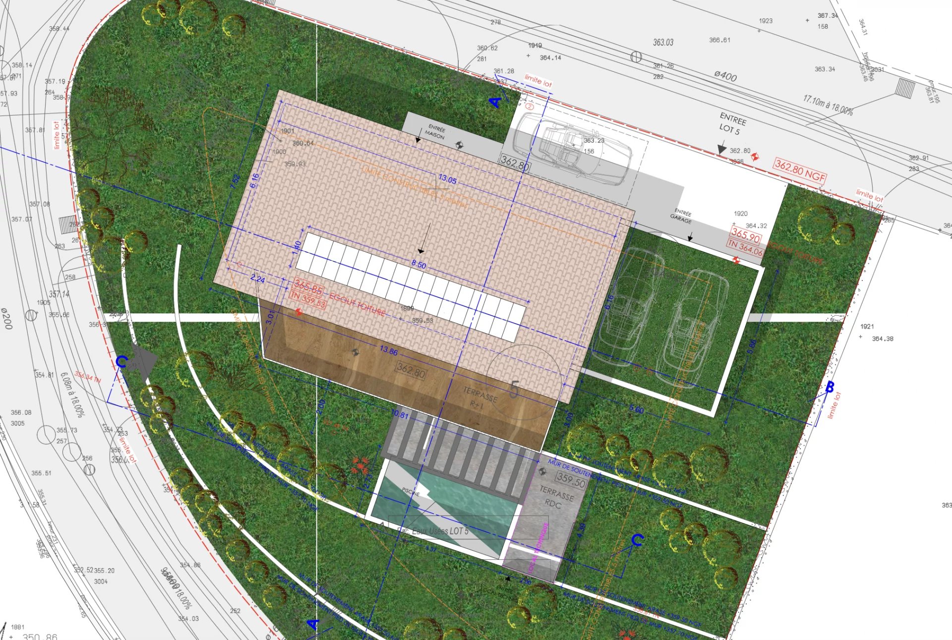 Ce terrain est vendu avec un permis de construire déjà accordé pour une villa contemporaine avec piscine. La futur...
