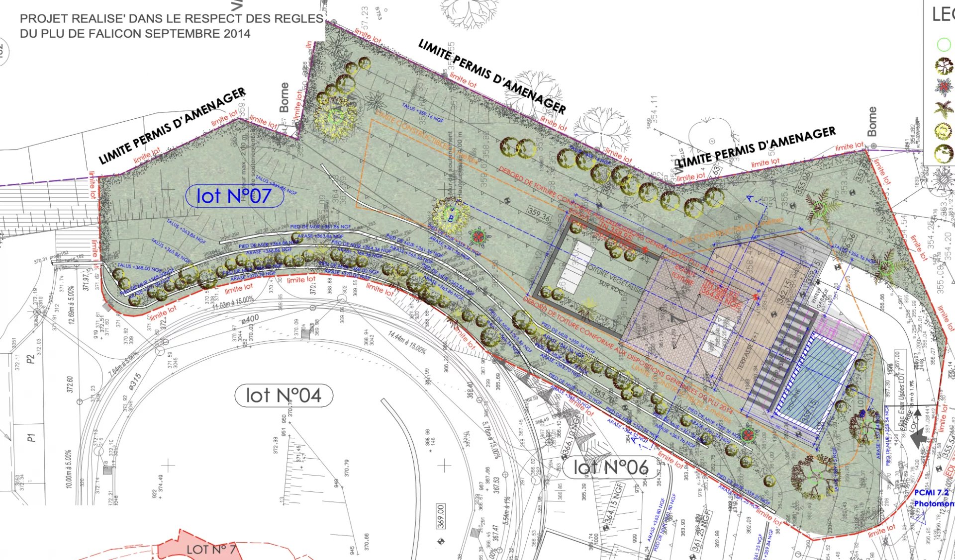 NICE/FALICON, dans un domaine de grand standing, VUE DOMINANTE MER pour ce terrain de 1065m2 avec permis de construire pour une villa d'une surface de plancher de 244,67m2, surface maximale autorisée de 285m2 ! Garage, piscine.