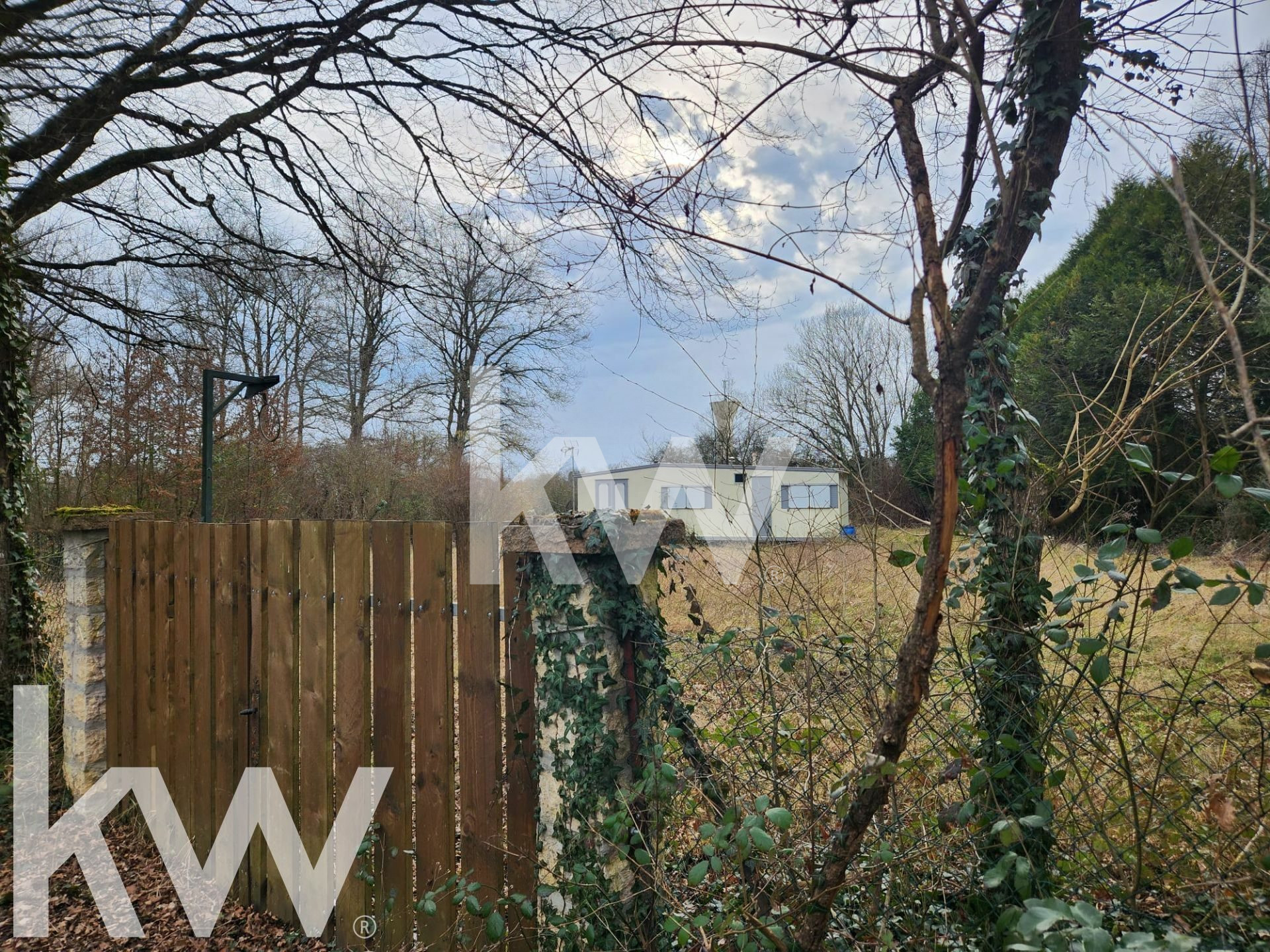 En partie clôturé avec un passage busé pour entrer un véhicule.