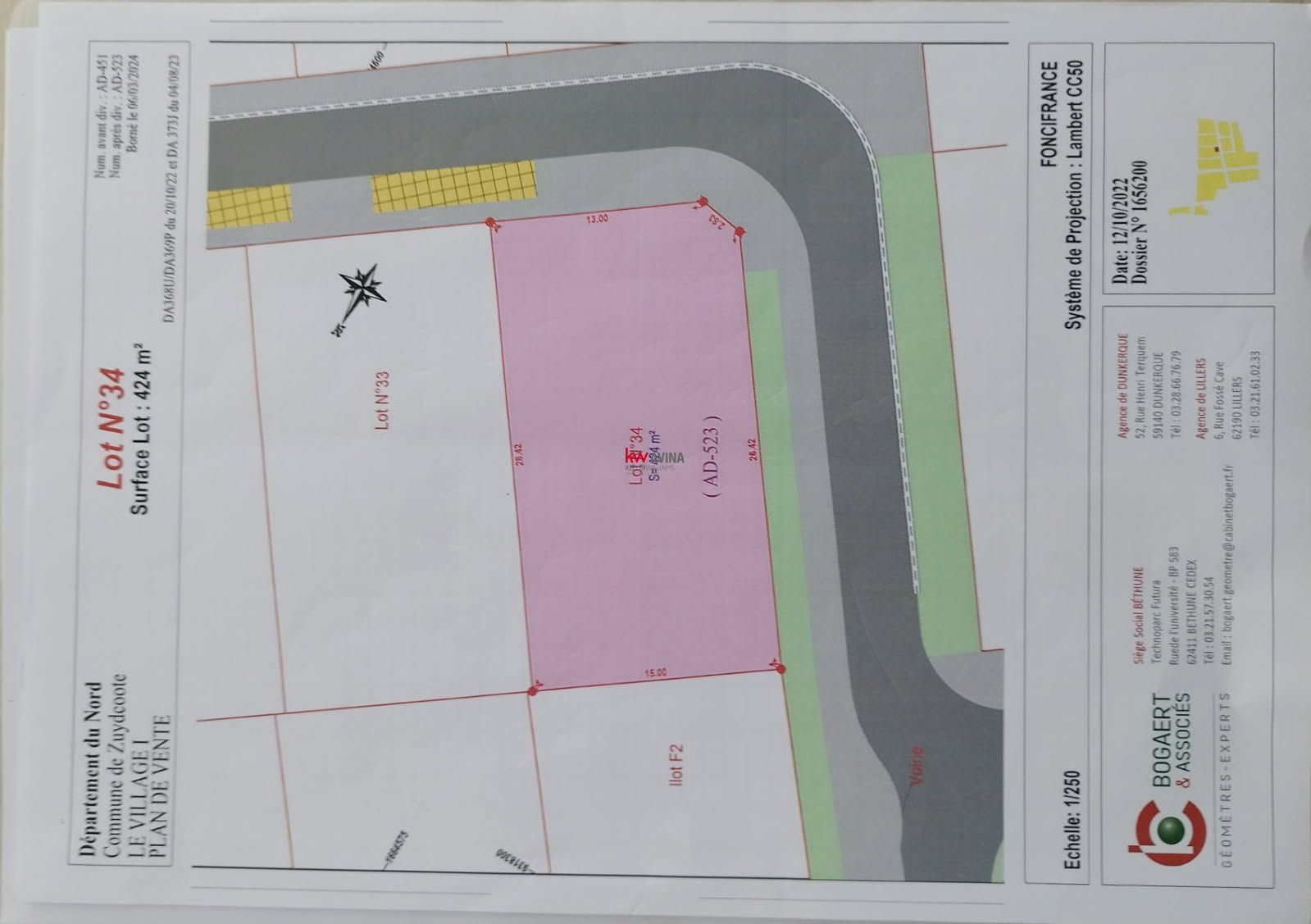 Le terrain à 12m de façade, 34m de profondeur et donne accès sur deux voies