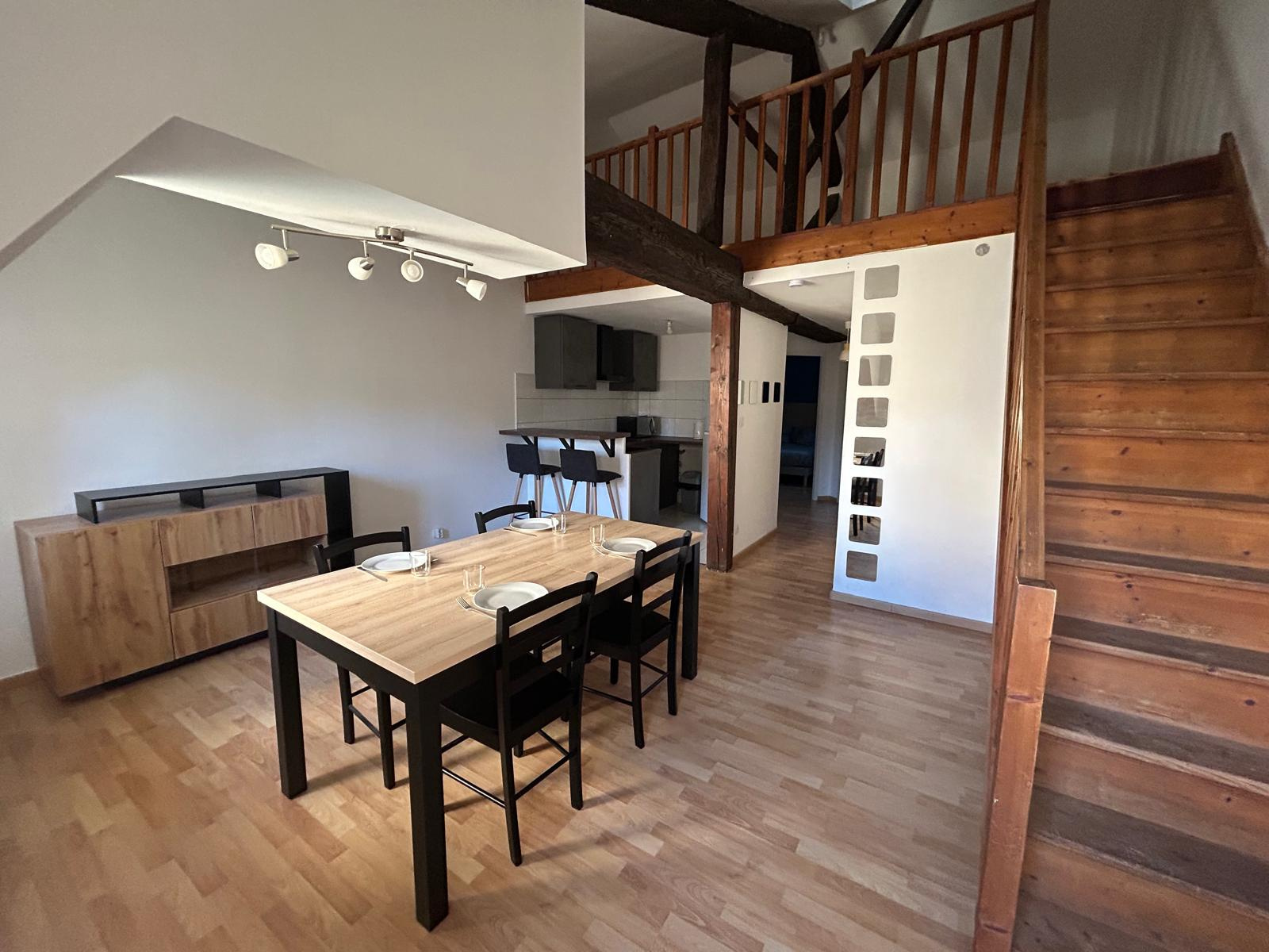 Location d'un appartement T3 en duplex entièrement meublé situé dans un immeuble calme, proche du centre-ville d'Agen.