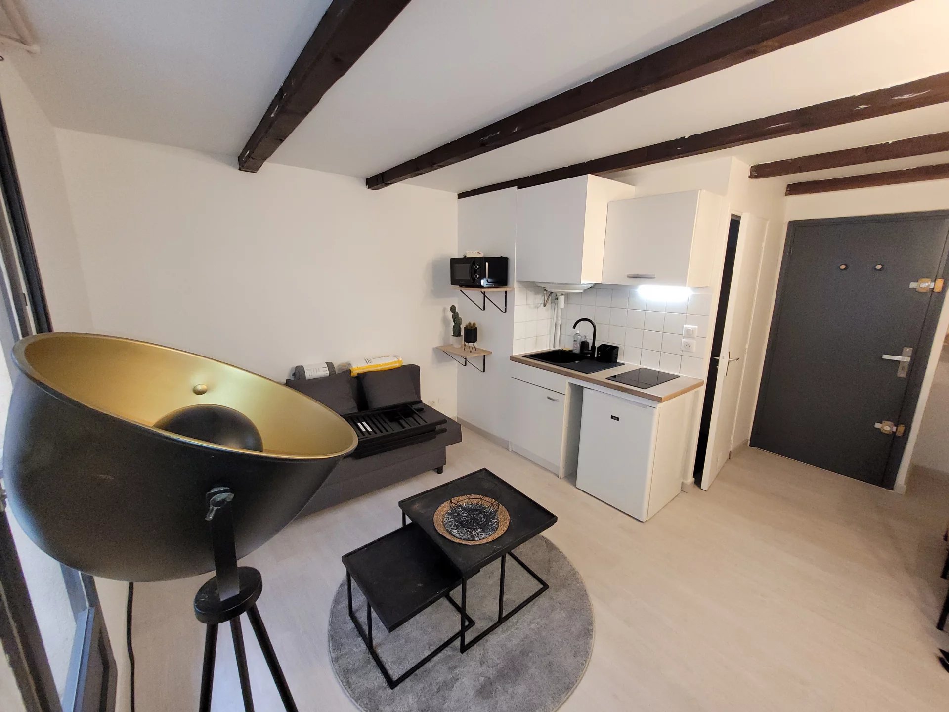Studio meublé de 17 m² au 1er étage ENTIERMENT RENOVE comprenant entrée, séjour/chambre avec cuisine équipée.