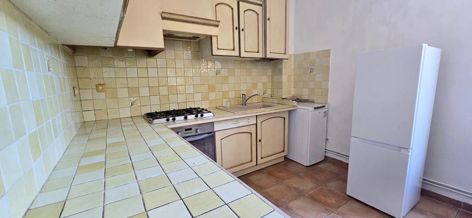 Composé d'un Séjour cuisine (équipée) avec terrasse coté Sud. un grande chambre avec balcon coté rue, salle de douche, une cave