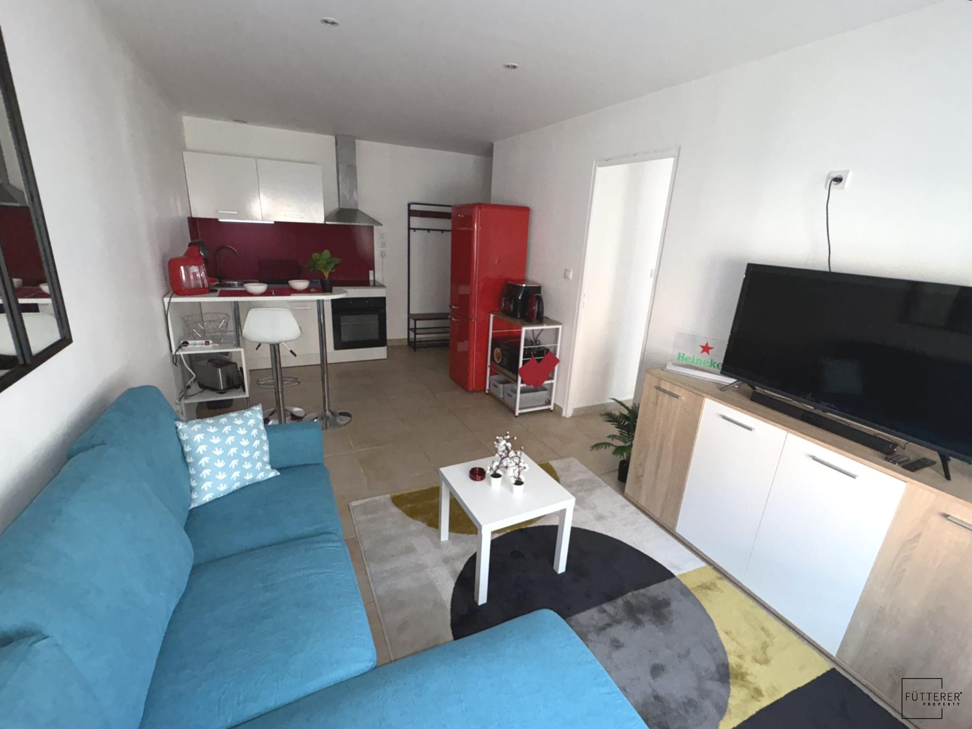 Fütterer Property vous propose : LEZIGNAN-CORBIERES : A proximité des axes principaux, appartement T2 rénové et entièrement meublé en rez-de-chaussée d'un immeuble.