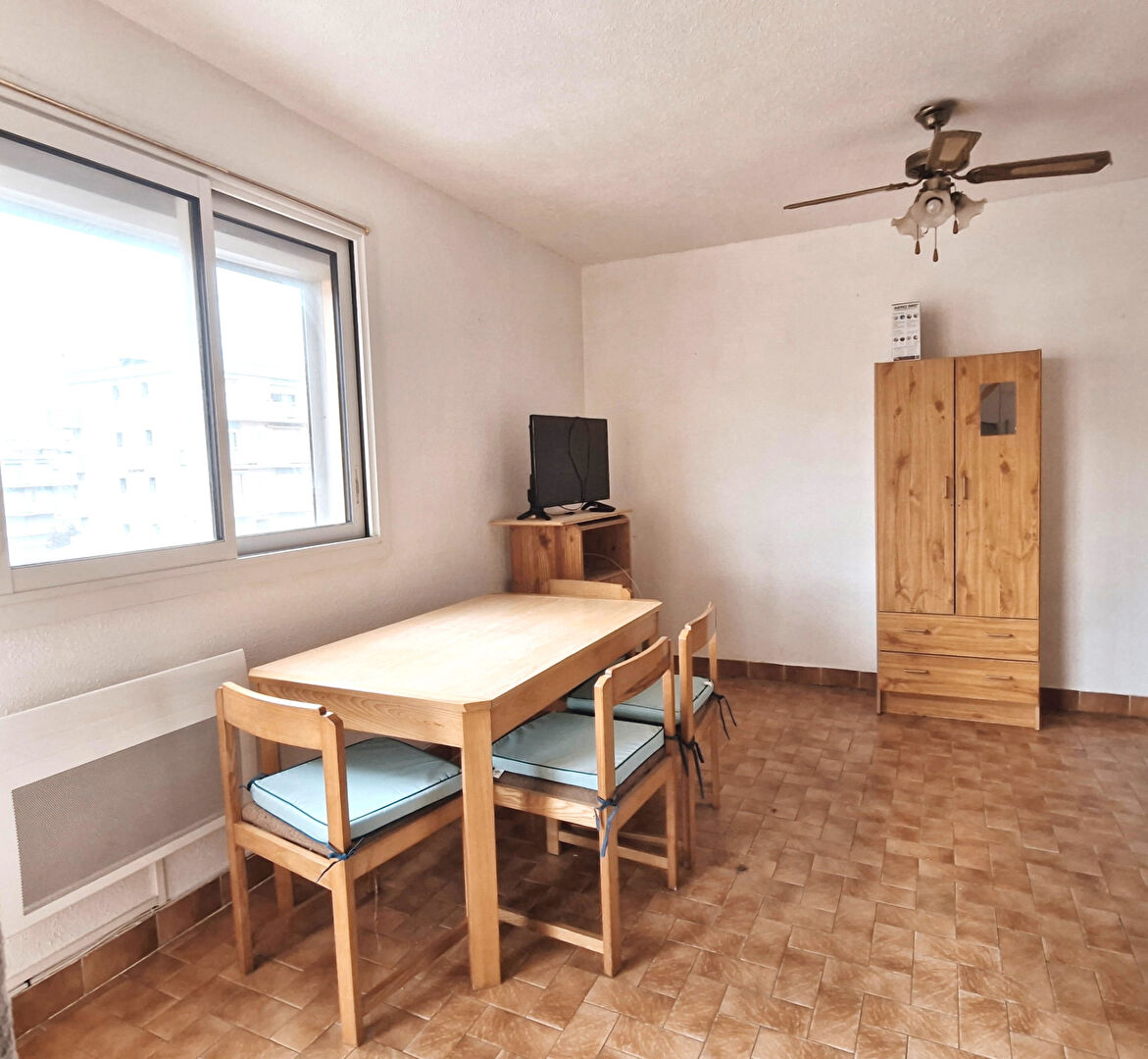 APPARTEMENT DE TYPE 2 COMPRENANT : UN SALON/SEJOUR, UNE COIN CUISINE SEMI-EQUIPEE, UNE CHAMBRE, UNE SALLE D'EAU