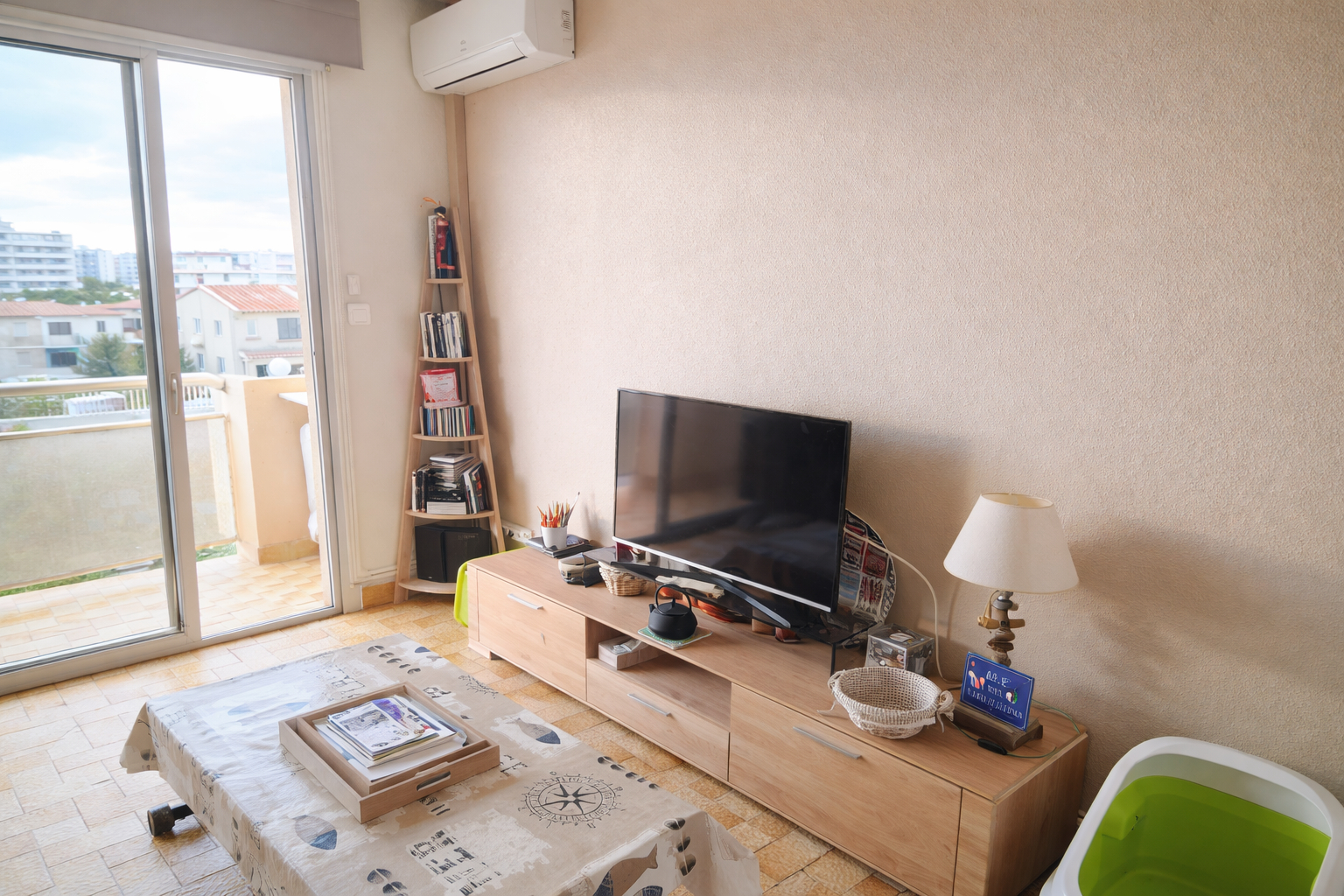 Cet appartement comporte un séjour de 21 m², une chambre et une kitchenette. Cet appartement bénéficie d'un chauffage individuel électrique.