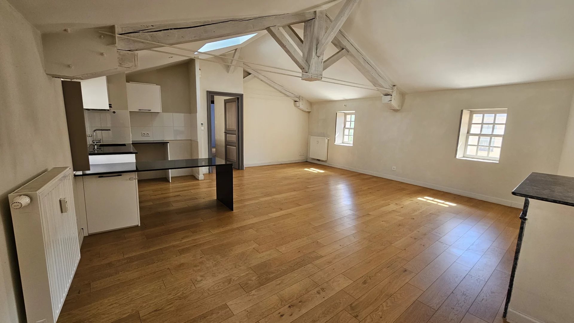 Il se compose d’un séjour lumineux avec poutres apparentes, d’une cuisine aménagée et équipée, d’un espace r...