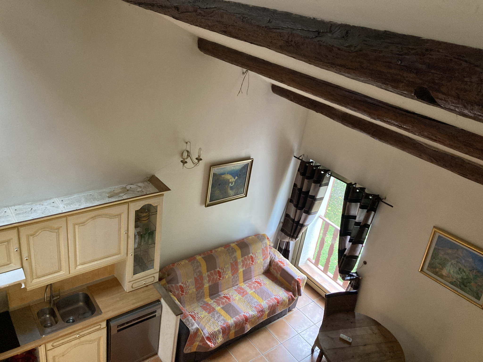 - une pièce à vivre - cuisine séparée aménagée équipée (plaques + hotte+ four) Une salle d'eau un wc