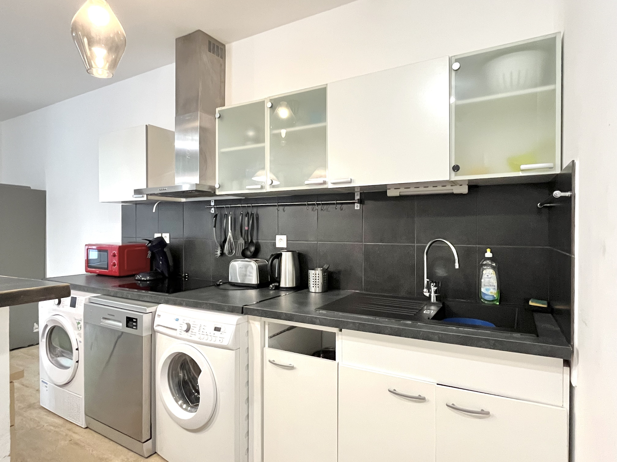 Cassis - Rue principale - Location d'un appartement de type 2/3 en duplex. Climatisé et en excellent état, il se compose, au niveau principal, d'une entrée, un séjour avec cuisine ouverte équipée, une chambre avec placard et salle d'eau et un wc...