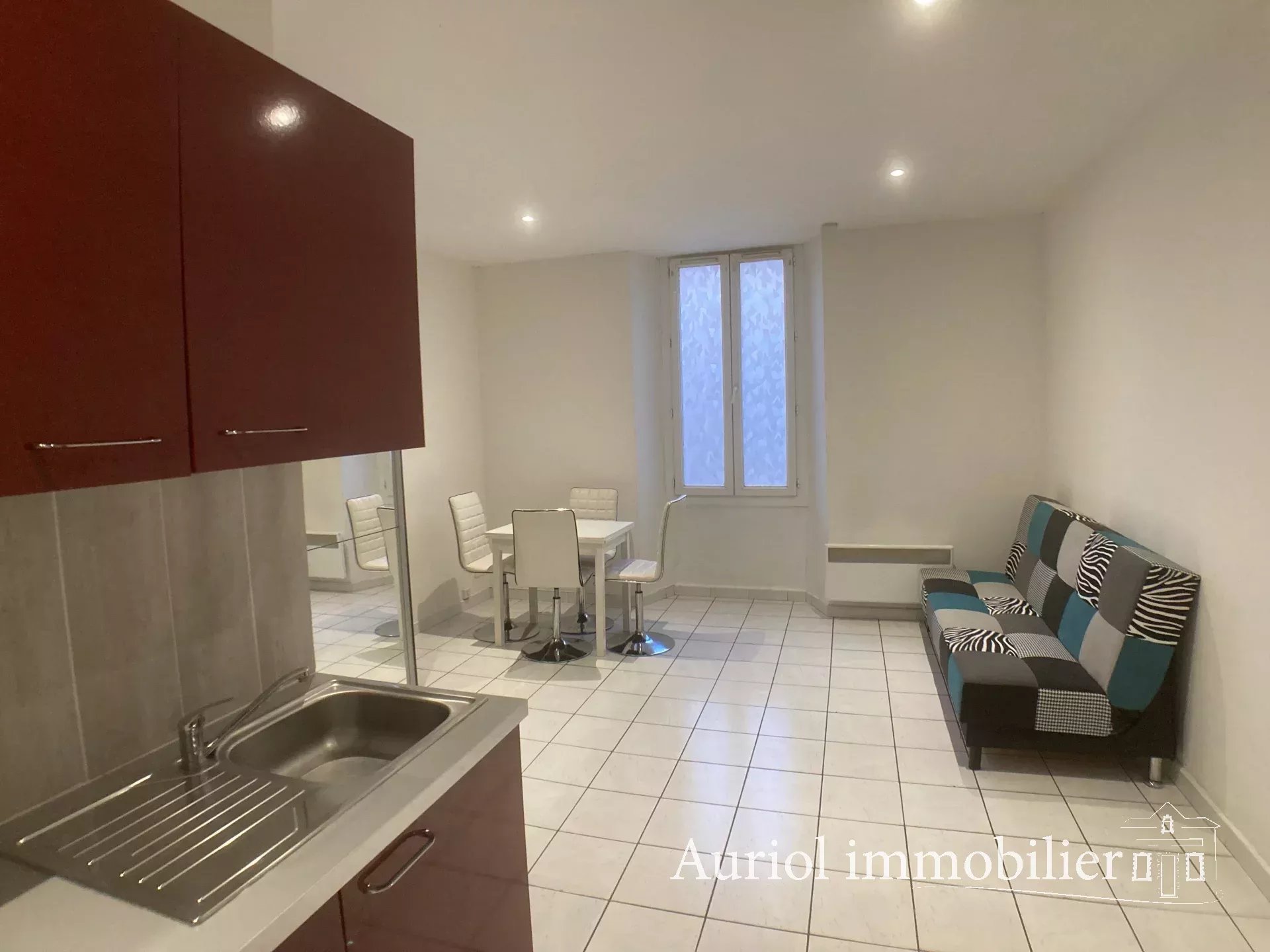 AURIOL - L'agence Auriol Immobilier vous propose ce studio meublé en parfait état au 1er étage - Le bien se compose d'une agréable cuisine américaine entièrement équipée ouverte sur séjour avec coin repas et espace salon, une salle d'eau avec wc...