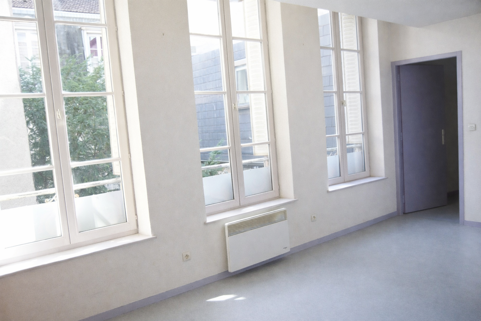 Séjour avec porte fenêtres double vitrage neuve ouvrant sur balcon