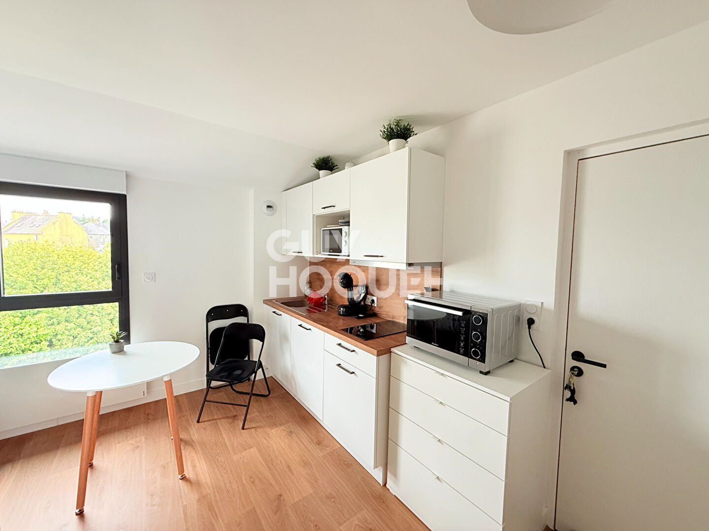 À quelques minutes du centre-ville, rue Auguste Kervern, à proximité des transports et commerces, studio meublé entièrement rénové en situé au 1er étage d'une résidence de standing avec ascenseur.