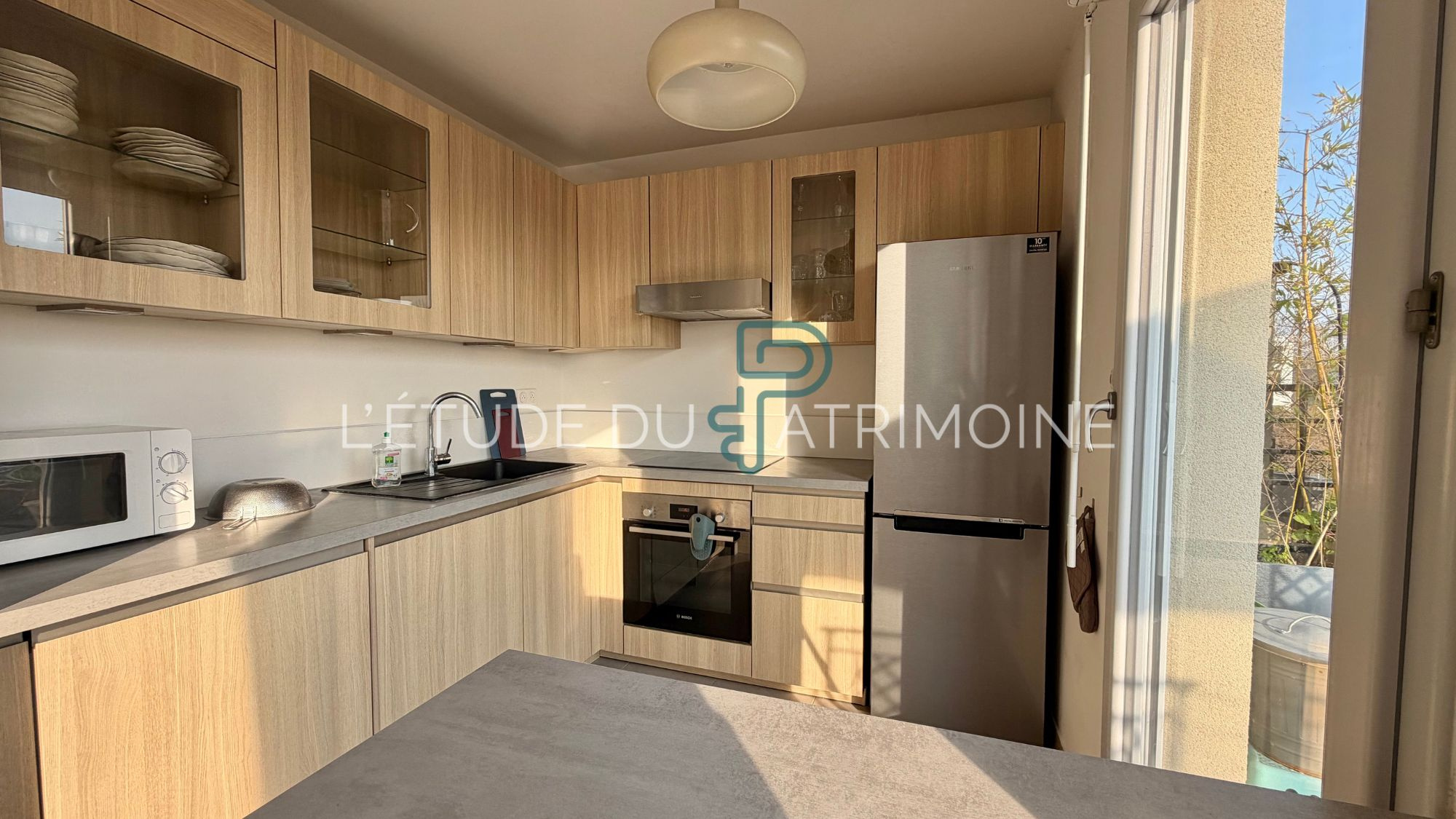 Ce bien comprend : Une entrée accueillante, Un séjour lumineux ouvrant sur un balcon, Une cuisine américaine aménagée et équipée (plaques et...