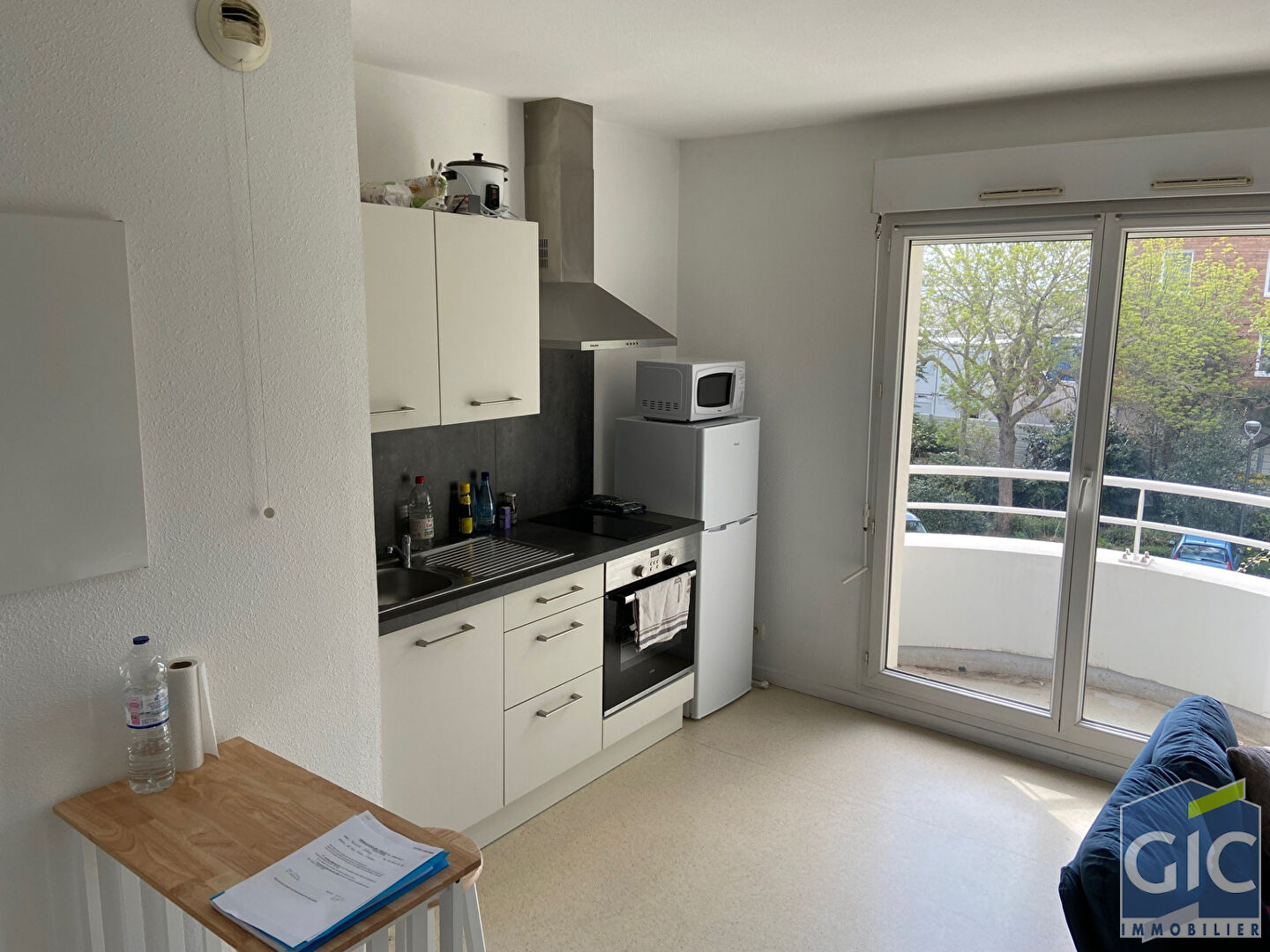 Studio situé en face des Rives de l'Orne, comprenant : un beau séjour exposé sud-ouest avec une kitchenette, une salle de bain avec WC, et un placard.
