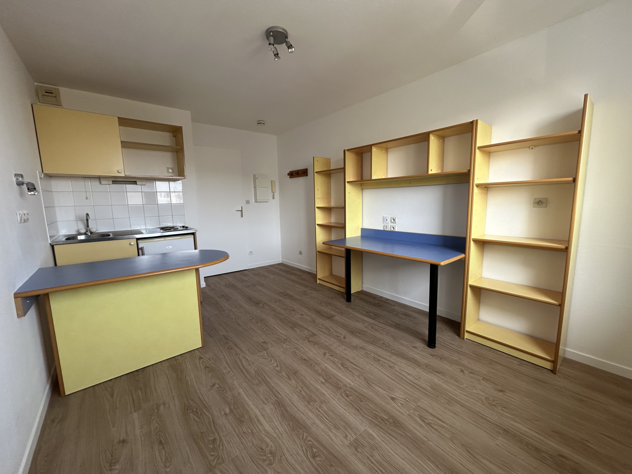 Studio meublé de 13m² au 1er étage comprenant : une pièce de vie avec kitchenette, salle d'eau et WC.