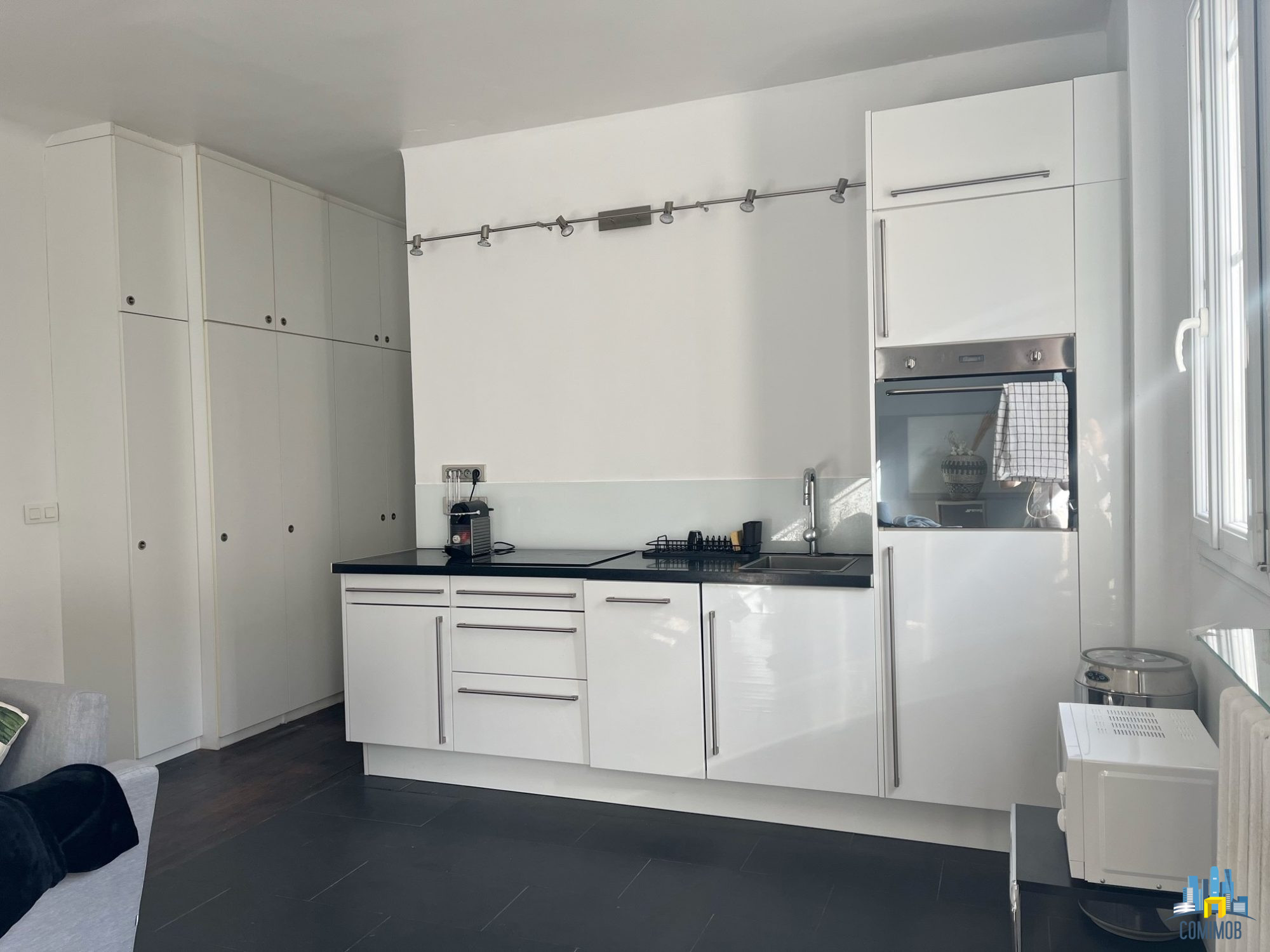 CHALEUREUX 2 PIÈCES MEUBLÉ au 4ème étage dans une résidence 1930 avec gardien et ascenseur, comprenant : entrée avec dressing, séjour avec cuisine ouverte aménagée et équipée, chambre, salle d'eau/wc.
