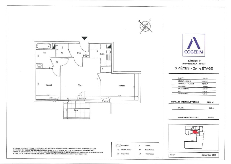 7' RER Orsay, en centre ville, résidence récente avec ascenseur, Appartement 3 Pièces comprenant: entrée avec placard, cuisine aménagée ouvert sur séjour, 2 chambres avec placard, salle de bains, wc indépendant.