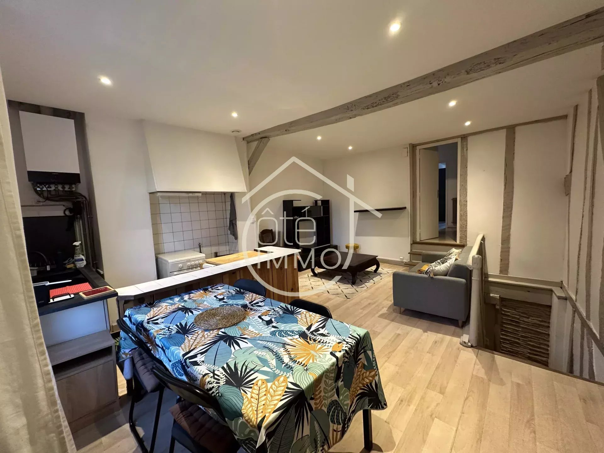 Côté Immo pays foyen vous propose à la location ce bel appartement meublé de 58m², surélevé, centre ville et très proche des commodités. Il se compose d'une pièce de vie et d'une cuisine équipée (hotte aspirante, gazinière avec four et placards). L...