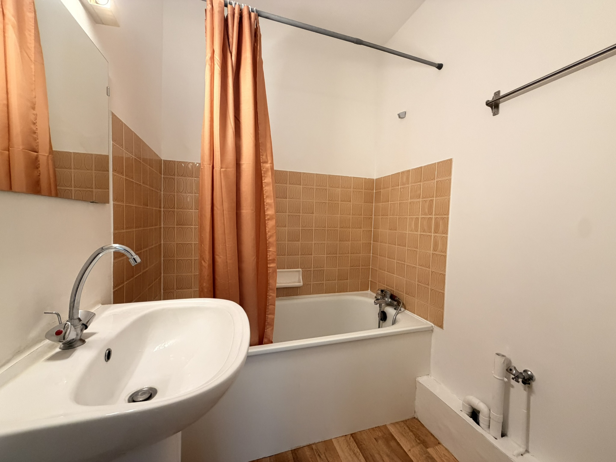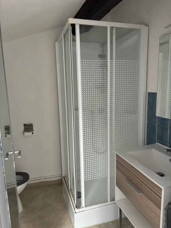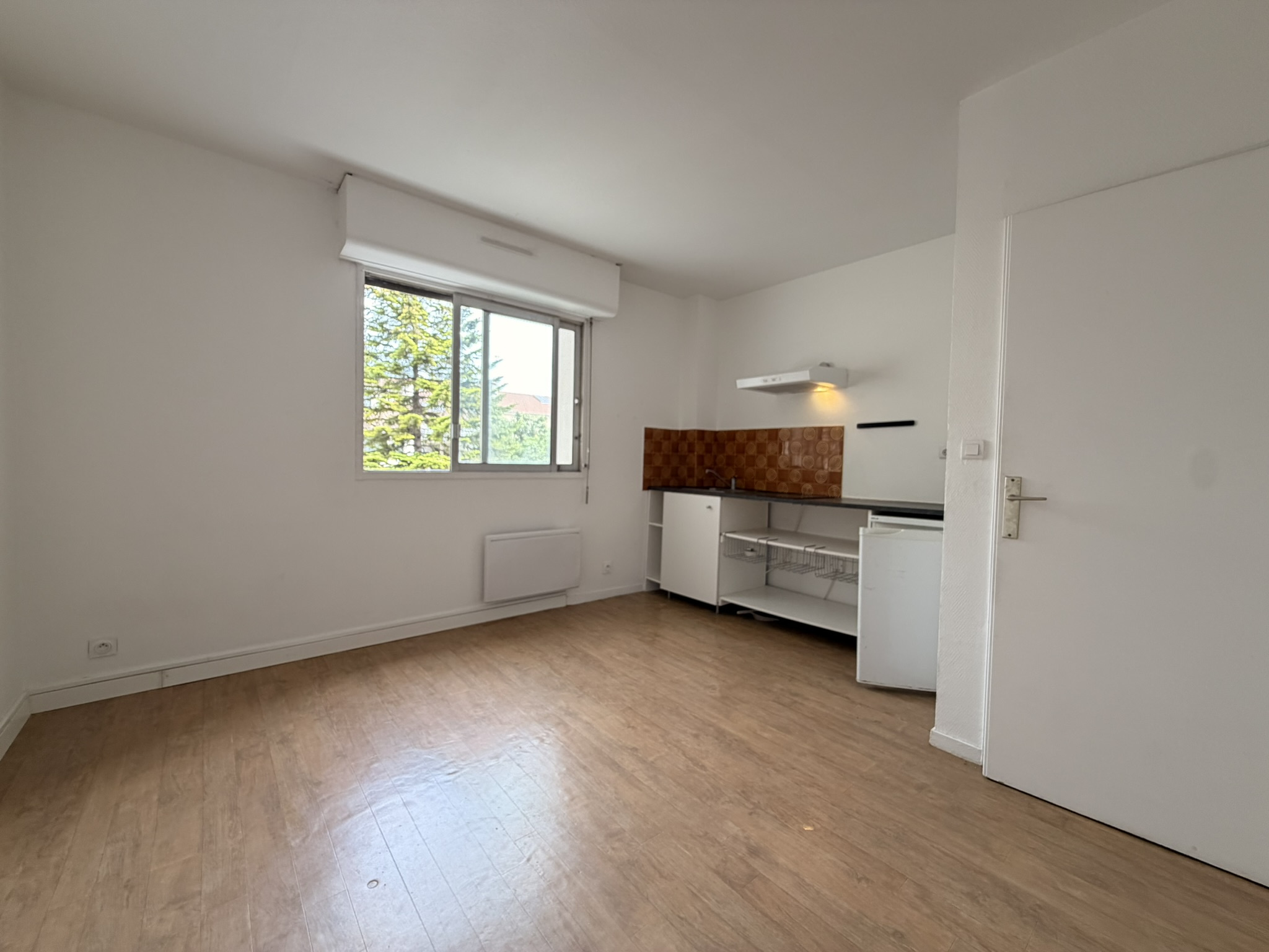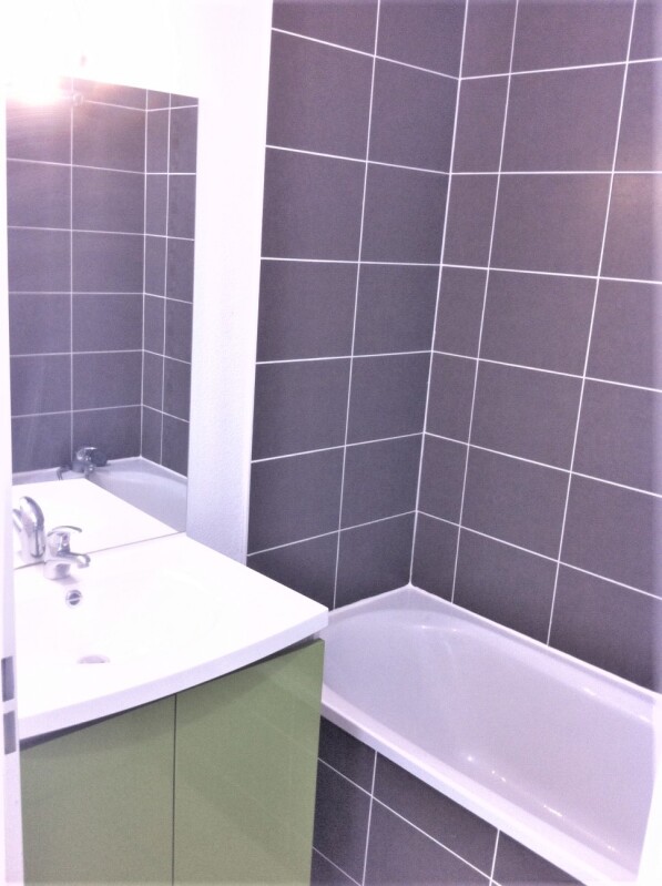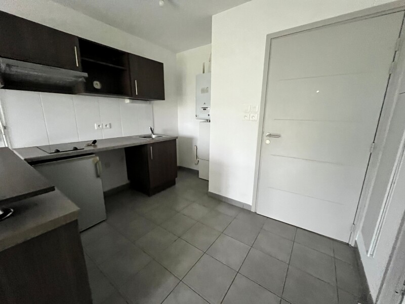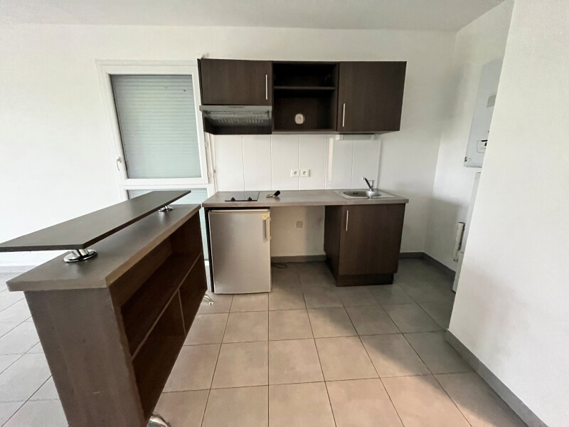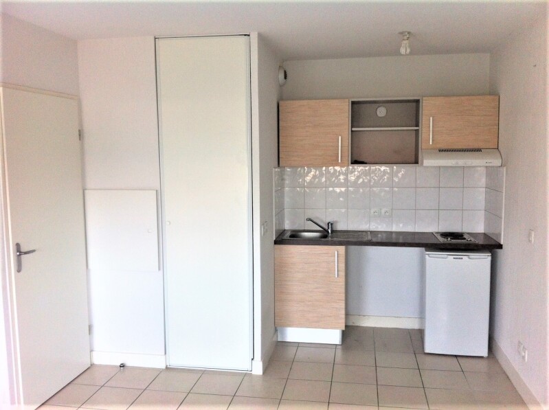 Appartement de T1 comprenant une entrée avec cuisine aménagée, un séjour avec placard, une salle de bain avec WC.
