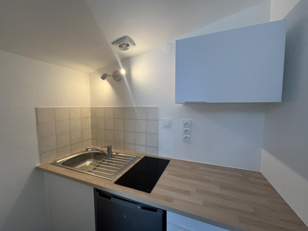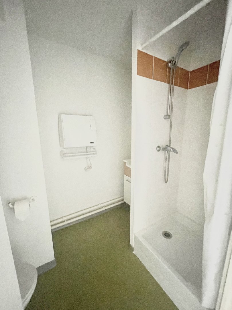 Ce studio meublé situé en centre ville avec accès direct au tram, ce compose d'une entrée avec placard, d'une salle d'eau avec wc, d'une pièce principale avec coin cuisine équipé (placards, plaque, hotte, micro-ondes et frigo top).