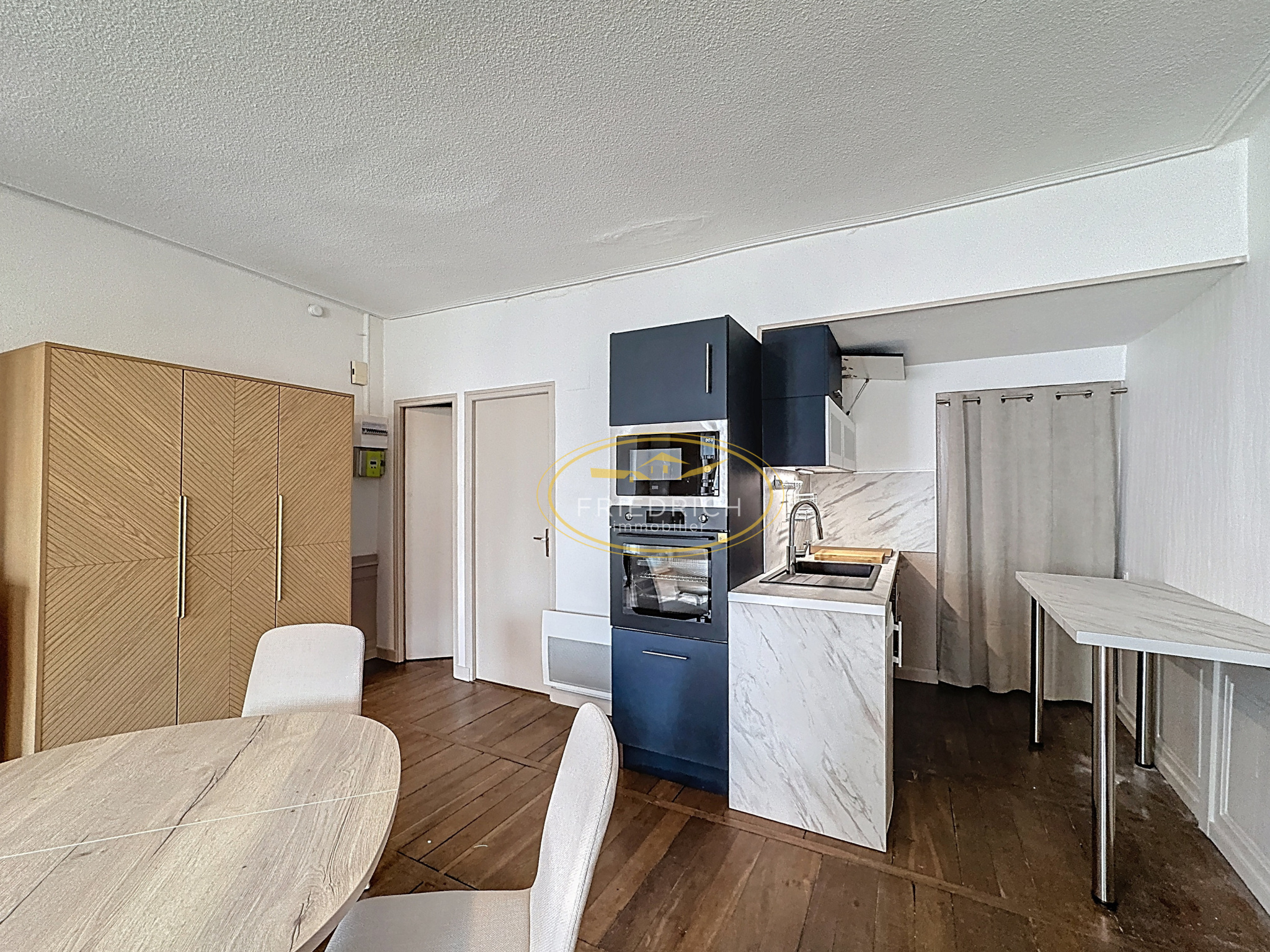 Appartement rénové comprenant une Cuisine Equipée (Plaques de Cuisson + Réfrigérateur) ouverte sur la Pièce Principale avec Placard et une Salle d'Eau avec WC.