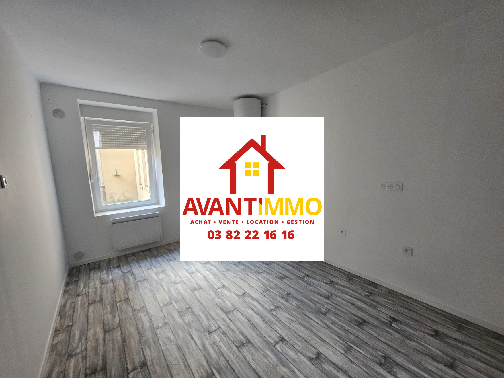 Appartement F1 au RDC d'un petit immeuble de 5 logements en hypercentre de Joeuf comprenant une entrée, une chambre, une pièce de vie avec un meuble évier et une salle de bain avec WC, baignoire et un meuble vasque.