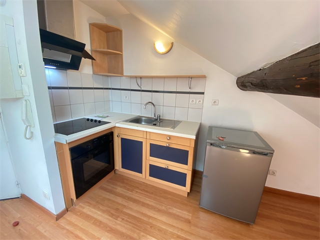 Secteur Cernay, appartement T1 Bis de 26 m2 au 1er étage, comprenant une entrée sur une cuisine, un séjour et une salle de douches avec WC.