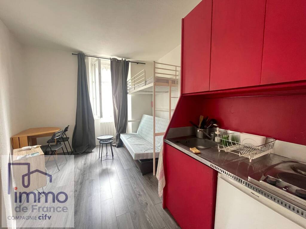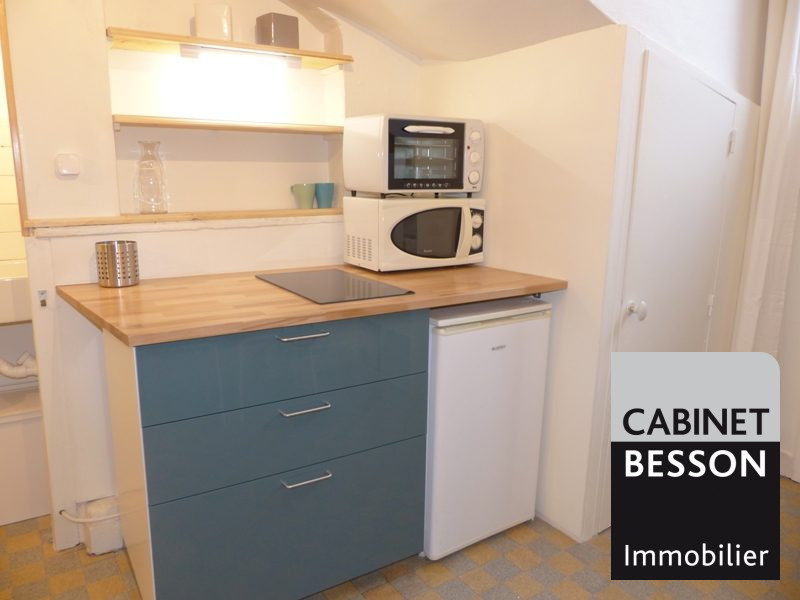 Studio meublé Hyper centre - Grenoble Hyper centre, 5ter rue Montorge, idéalement placé. Studio entièrement meublé de 18 m² au 3eme étage, kitchenette équipée avec 2 plaques vitrocéramiques et un frigo top, micro-onde, lit, placard, étagères, table, chaise, va...