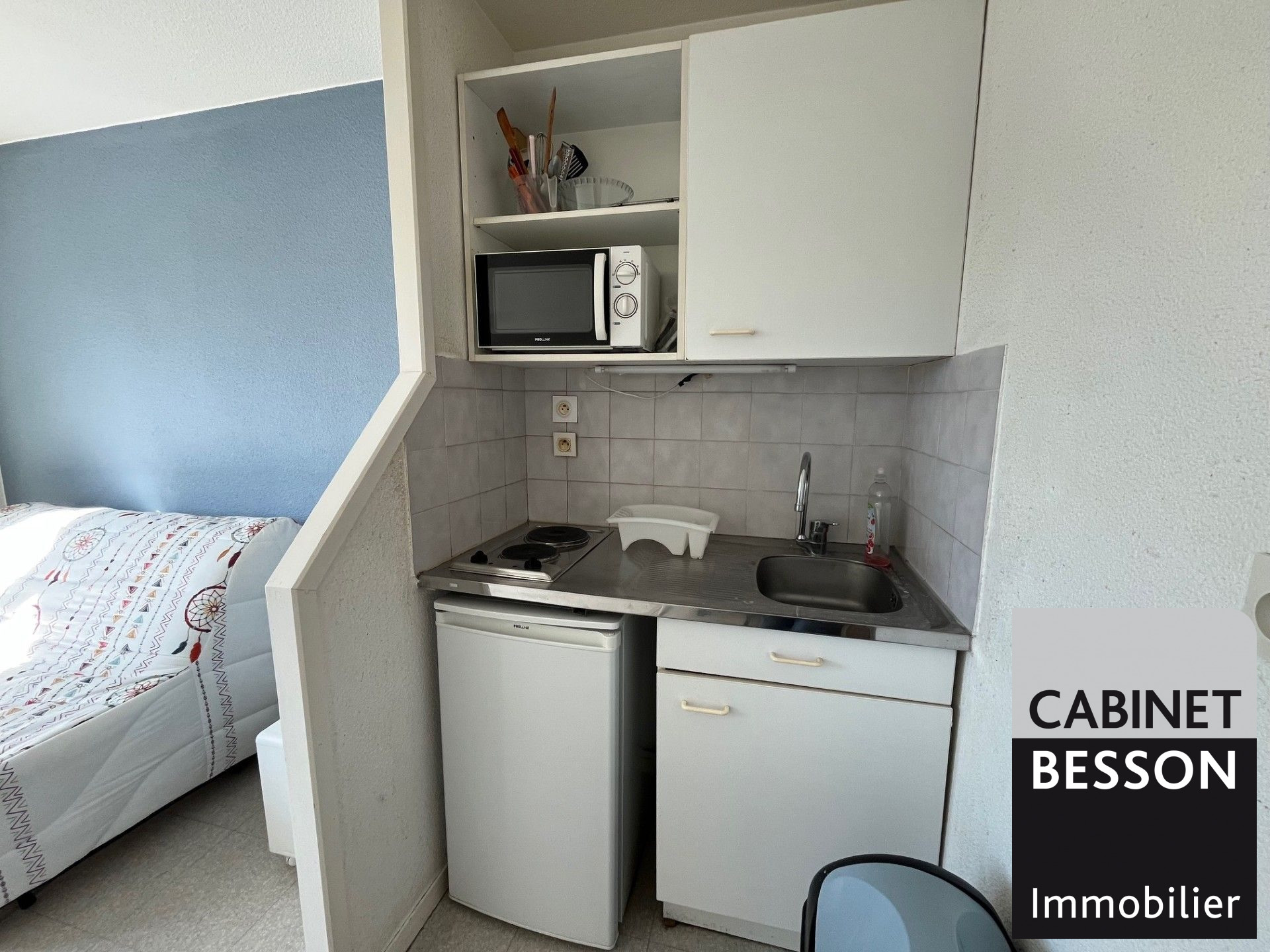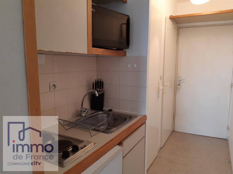 Cet studio de 16,26 m² est situé au sixième et dernier étage avec ascenseur donnant sur l'arrière de l'immeuble. Il est composé d'une pièce principale avec prêt de meubles,une kitchenette...